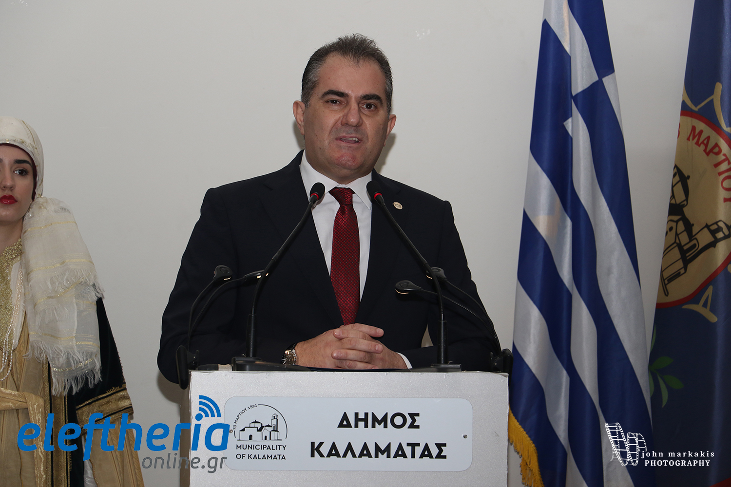 Στην προσφώνησή του ο δήμαρχος Θαν. Βασιλόπουλος, αναφερόμενος στον Κ. Καραμανλή, είπε, μεταξύ άλλων, ότι “η ανακήρυξή σας ως επίτιμου δημότη του Δήμου Καλαμάτας αποτελεί, πρωτίστως, μια πράξη θεσμικής αναγνώρισης της προσφοράς σας προς την πατρίδα.