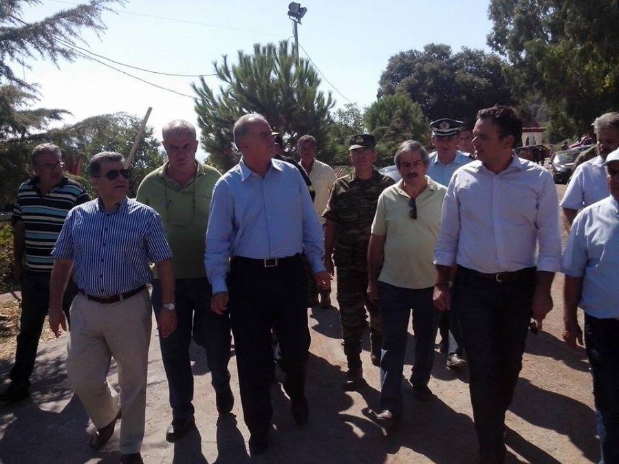 Ο υφυπουργός Εθνικής Αμυνας Γιάννης Λαμπρόπουλος υποσχέθηκε αποζημιώσεις στους πληγέντες από τη φωτιά.