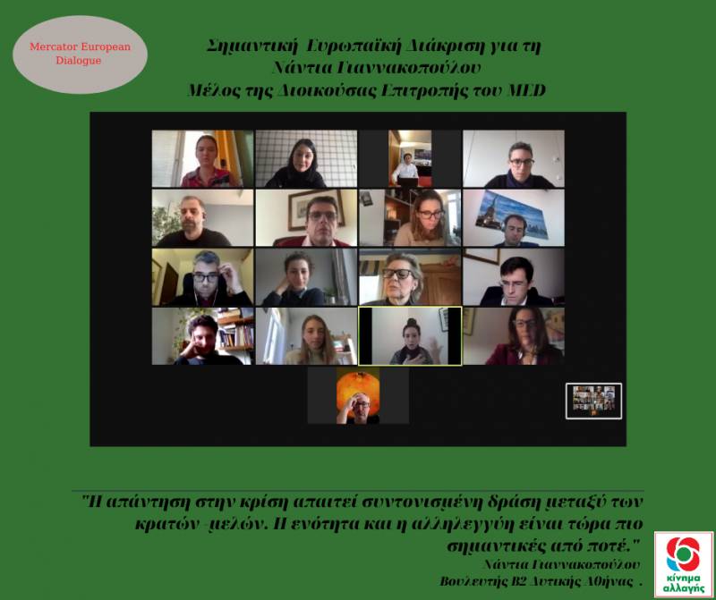 Μέλος της Διοικούσας Επιτροπής του πανευρωπαϊκού δικτύου Mercator Dialogue ανακηρύχθηκε την περασμένη Παρασκευή η βουλευτής Β’ Δυτικού Τομέα Αθήνας του ΚΙΝΑΛ Νάντια Γιαννακοπούλου.