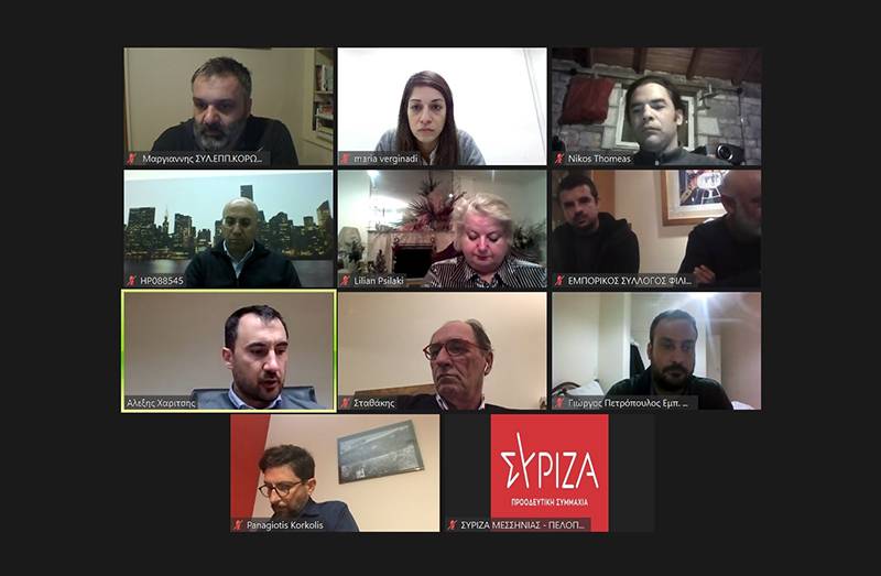 Αναλυτικά, στη σχετική ανακοίνωση σε ό,τι αφορά τη συζήτηση αναφέρονται τα εξής: “Με πρωτοβουλία της Νομαρχιακής Επιτροπής Μεσσηνίας του ΣΥΡΙΖΑ-ΠΣ πραγματοποιήθηκε την Τετάρτη 23/12 εκδήλωση μέσω τηλεδιάσκεψης με τίτλο «Οι οικονομικές προκλήσεις της πανδημίας και η προγραμματική πρόταση του ΣΥΡΙΖΑ-ΠΣ για την επόμενη ημέρα». Στην εκδήλωση συμμετείχαν με παρεμβάσεις τους ο βουλευτής Μεσσηνίας και τομεάρχης Ανάπτυξης και Επενδύσεων της Κ.Ο. του ΣΥΡΙΖΑ Αλέξης Χαρίτσης, ο πρώην υπουργός Περιβάλλοντος και Ενέργειας και υπεύθυνος σχεδιασμού προγράμματος του ΣΥΡΙΖΑ-ΠΣ Γιώργος Σταθάκης και ο σύμβουλος για θέματα Οικονομίας και Ανάπτυξης του προέδρου του ΣΥΡΙΖΑ Αλέξη Τσίπρα και πρώην γενικός γραμματέας Δημόσιων Επενδύσεων και ΕΣΠΑ Παναγιώτης Κορκολής. Παρεμβάσεις έγιναν από εκπροσώπους παραγωγικών φορέων, του Επιμελητήριου Μεσσηνίας και εμπορικών συλλόγων του νομού.