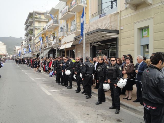 Επεισόδια σημειώθηκαν μετά το τέλος της παρέλασης στην Καλαμάτα, όταν μέλη του ΣΥΡΙΖΑ επιχείρησαν να σπάσουν τον αστυνομικό κλοιό, τις δυνάμεις των ΜΑΤ που είχαν παραταχθεί στην Αριστομένους για να τους εμποδίσουν να πραγματοποιήσουν πορεία διαμαρτυρίας κατά των σκληρών μέτρων σε βάρος της Κύπρου.