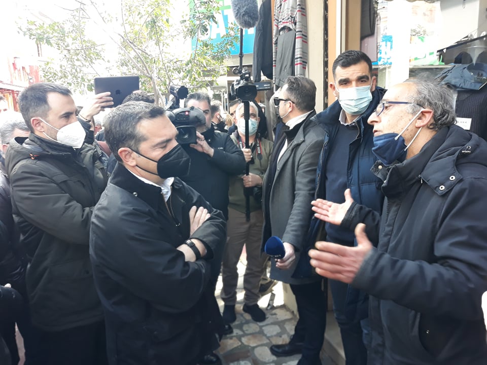Κατά τη διάρκεια της περιοδείας στο Ιστορικό Κέντρο ο κ. Τσίπρας είχε συνάντηση και με τον πρόεδρο του Εμπορικού Συλλόγου Καλαμάτας Γιώργο Εγγλέζο, ο οποίος του παρουσίασε την δ΄'υσκολη οικονομική κατάσταση που βιώνουν οι επαγγελματίες. Ενδεικτικά του έδειξε λογαριασμό ρεύματος από τον ναό του Αγίου Κωνσατνατίνου των εμπόρων, όπου προηγούμενος λογαριασμός ήταν 50 ευρώ και ο τελευταίος ξεπέρασε τα 800 ευρώ!