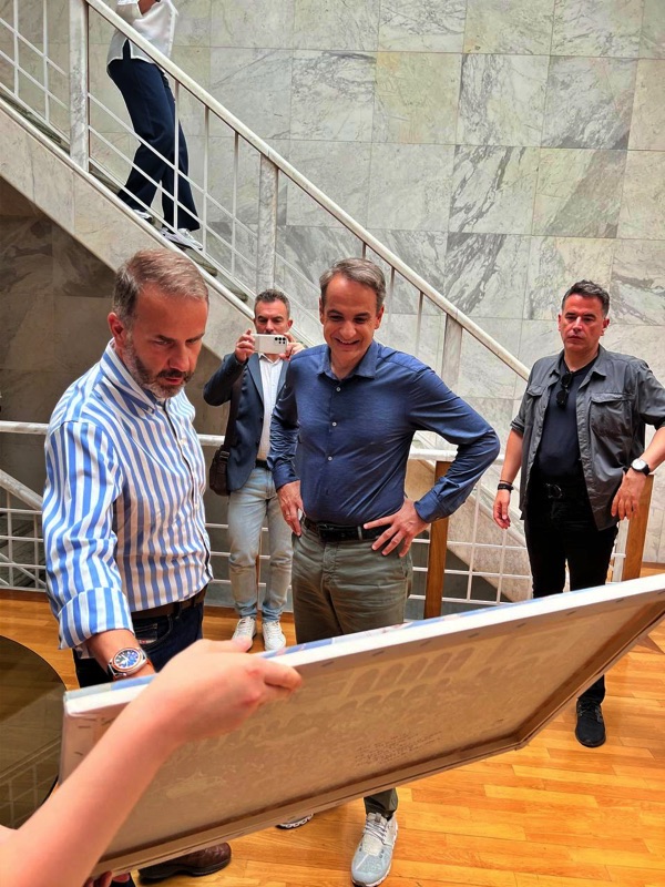 Τον υποδέχθηκαν ο Σπύρος Καμπιώτης,ι διοκτήτης του IONIAN TV και αντιπρόεδρος της Ενωσης Ενημερωτικών Τηλεοράσεων Ελληνικής Περιφέρειας (ΕΕΤΕΠ) και τα στελέχη του τηλεοπτικού σταθμού.