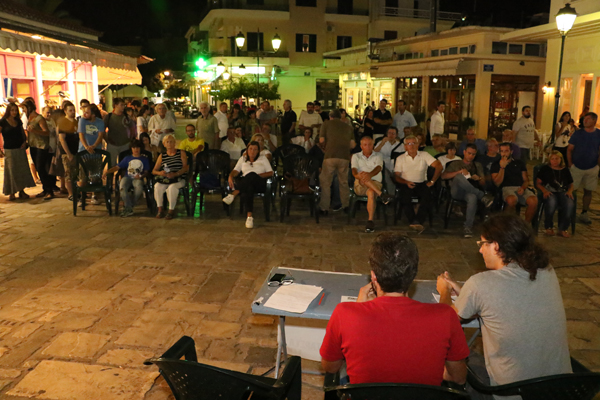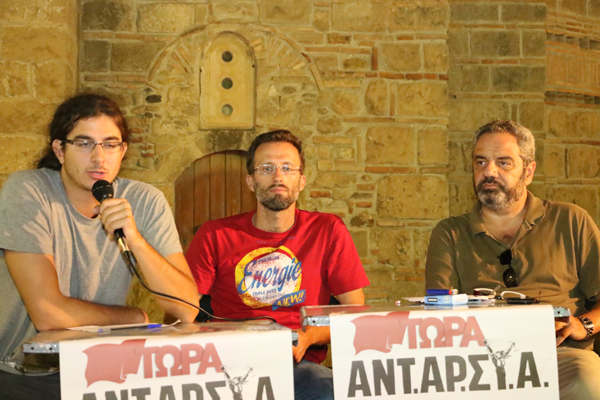 Εκεί μίλησε ο Σπύρος Αλεξίου μέλος της Κεντρικής Συντονιστικής Επιτροπής της ΑΝΤΑΡΣΥΑ και ο Αλέξανδρος Μινωτάκης μέλος του Πανελλαδικού Συντονιστικού Οργάνου. Χαιρετισμό απηύθυναν και οι υποψήφιοι βουλευτές του νομού.