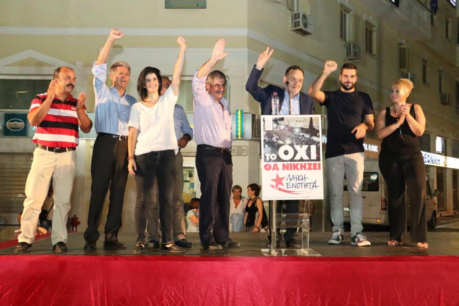 Ο κ. Λαφαζάνης σημείωσε ότι «το πρόγραμμά μας περιλαμβάνει την ακύρωση όλων των μνημονίων, τη διακοπή αποπληρωμής του χρέους και τη διαγραφή του, τη στήριξη μισθών και συντάξεων, τον τερματισμό της λιτότητας και της φορολεηλασίας στα μικρομεσαία εισοδήματα, αφορολόγητο στα 12.000 ευρώ για όλα τα φυσικά πρόσωπα, κατάργηση του ΕΝΦΙΑ, μηδενικό ή μονοψήφιο ΦΠΑ για όλα τα είδη πλην τα υπερπολυτελείας, ακύρωση των αντιαγροτικών μέτρων του τρίτου μνημονίου, εθνικοποίηση των τραπεζών, σεισάχθεια στα ιδιωτικά χρέη, τερματισμό των ιδιωτικοποιήσεων και της εθνικής υποτέλειας, σχέδιο παραγωγικής ανασυγκρότησης της χώρας».