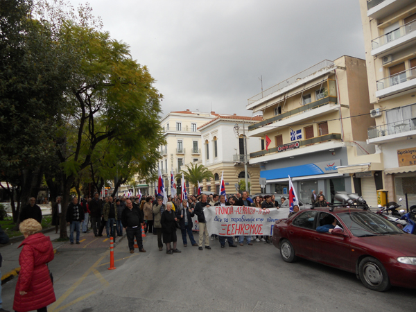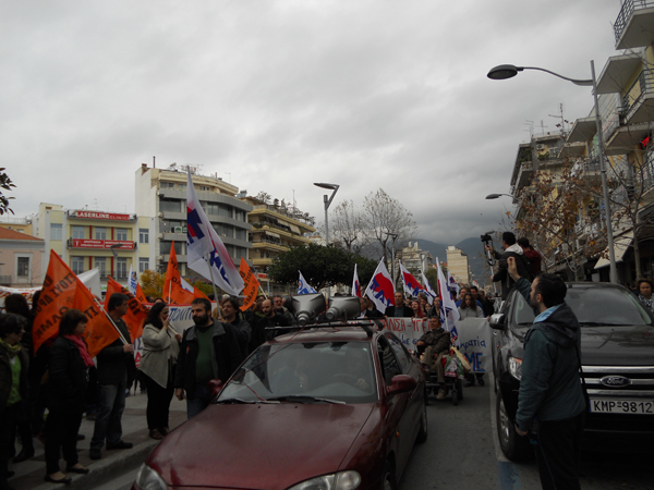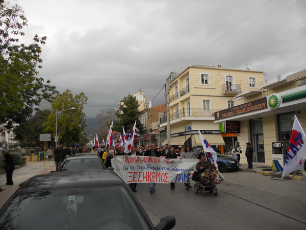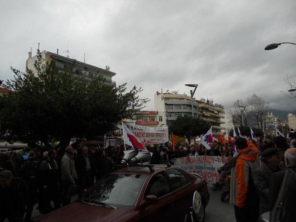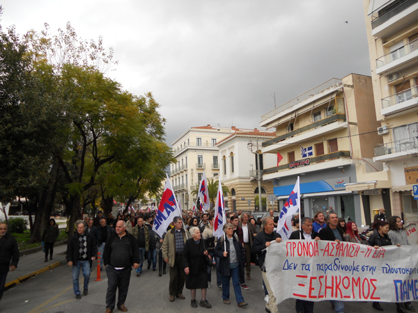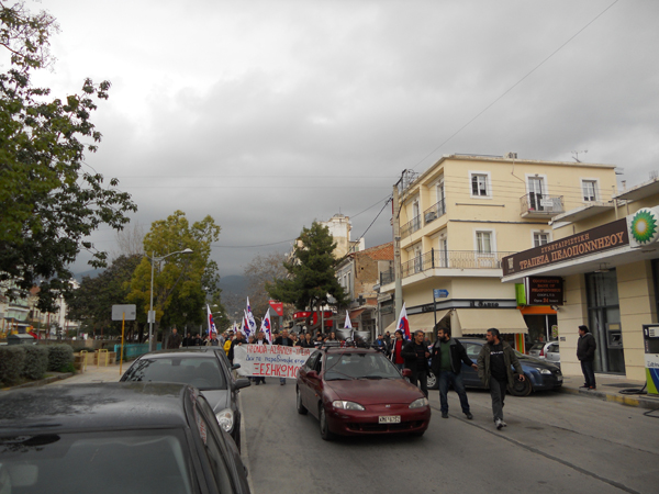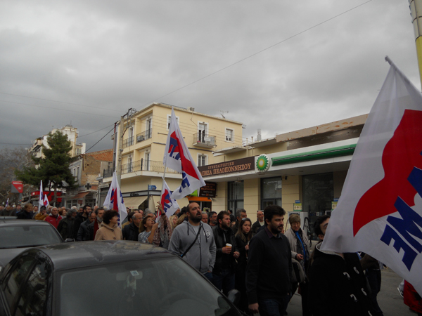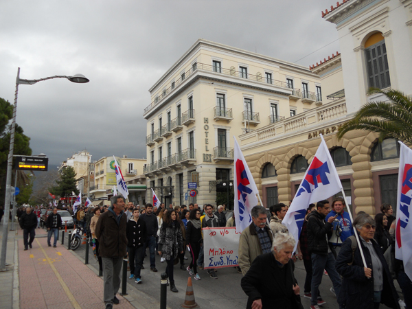 Τα ταξικά συνδικάτα που συντάσσονται με το ΠΑΜΕ έκαναν νωρίτερα συγκέντρωση στην πλατεία 23ης Μαρτίου και ακολούθησε πορεία στους κεντρικούς δρόμους της πόλης, με αγωνιστικά συνθήματα.