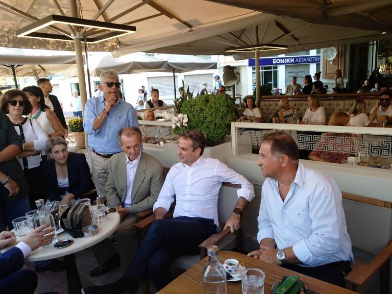 Λίγο μετά την ολοκλήρωσης της εκδήλωσης του Επιμελητηρίου Μεσσηνίας στο Μέγαρο χορού Καλαμάτας με θέμα το επιτυχημένο τουριστικό πρότυπο της Costa Navarino και η επίδρασή του στην οικονομία και την κοινωνία της Μεσσηνίας, ο πρωθυπουργός, αφού χαιρέτισε πολίτες και καταστηματάρχες βρέθηκε στην καφετέρια "Platea" συνοδευόμενος από τον πρόεδρο της ΝΟΔΕ Μεσσηνίας της Νέας Δημοκρατίας Αργύρη Μαστοράκη και άλλα τοπικά στελέχη του κυβερνώντος κόμματος.