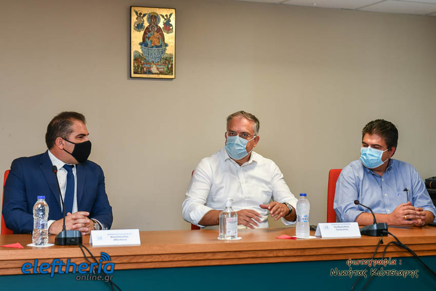 Ο υπουργός χαιρέτισε την σύμβαση για τον νέο αγωγό μεταφοράς νερού από το Πήδημα στην Καλαμάτα, ενώ στάθηκε ιδιαίτερα στο ενδιαφέρον του πρωθυπουργού Κυριάκου Μητσοτάκη και του Μεσσήνιου πρώην πρωθυπουργού Αντώνη Σαμαρά. Αναφέρθηκε και στην προσπάθεια, που είχε ξεκινήσει από τον προκάτοχό του στο υπουργείο Εσωτερικών Αλέξη Χαρίτση (χωρίς πάντως να τον κατονομάσει)