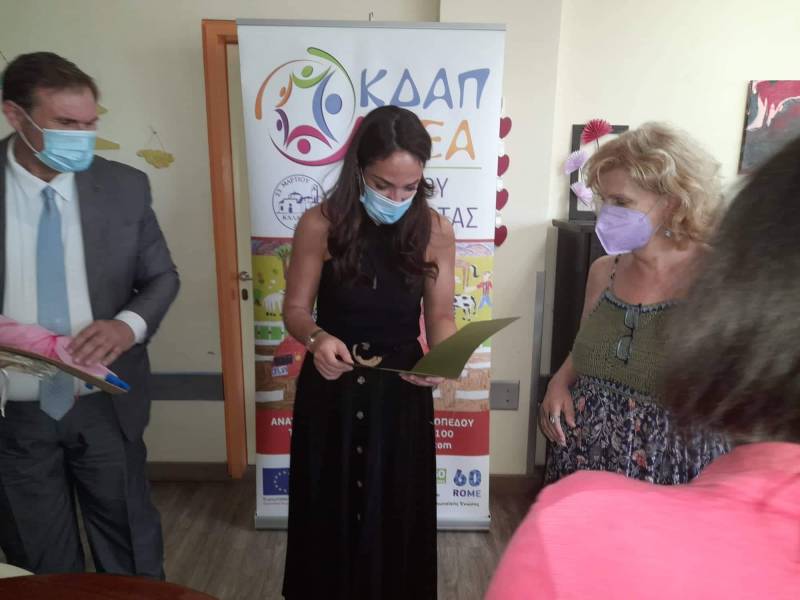 Μετά το πέρας της ομιλίας του πρωθυπουργού Κυριάκου Μητσοτάκη στο Μέγαρο Χορού για το νέο ΕΣΠΑ, η κ. Μιχαηλίδου συνοδευόμενη από τον αρμόδιο αντιδήμαρχο Γιώργο Φάβα επισκέφθηκε τον ιδιωτικό παιδικό σταθμό “Το Περιβόλι της Γιαγιάς”, όπου συνομίλησε με το προσωπικό και τον διευθυντή.