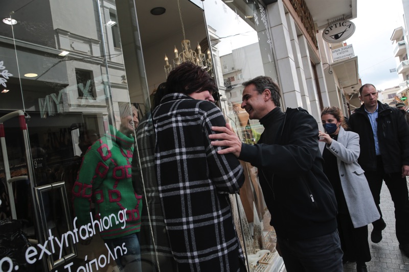 Ο πρωθυπουργός στη συνέχεια περπάτησε σε κεντρικούς δρόμους της Τρίπολης, συνοδευόμενος από τον δήμαρχο Κώστα Τζιούμη.