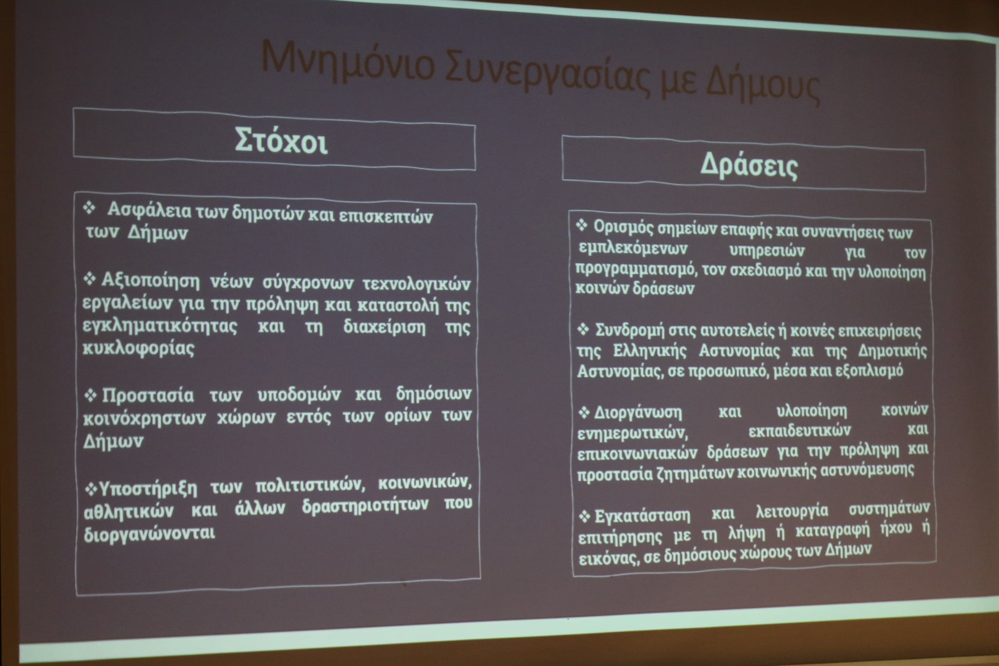 “Η ασφάλεια των πολιτών είναι καθήκον της Πολιτείας, αλλά ταυτόχρονα όπως πολύ σωστά έγινε στη Μεσσηνία είναι κοινή μας υπόθεση, γι’ αυτό συμμετέχουν οι δήμοι.