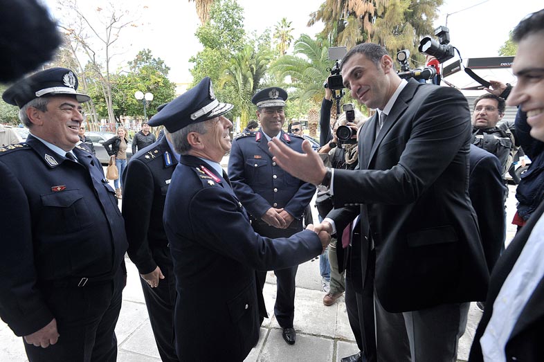 Στη συνέχεια ο Υπουργός Δημόσιας Τάξης και Προστασίας του Πολίτη συναντήθηκε με το Δήμαρχο Κορινθίων Αλέξανδρο Πνευματικό και είχε μία εποικοδομητική συνάντηση για τα θέματα δημόσιας ασφάλειας που αντιμετωπίζει η περιοχή. Τονίστηκε ότι πρωταρχική επιδίωξη του Υπουργείου είναι η αστυνόμευση σε επίπεδο καθημερινότητας, με στόχο την αναβάθμιση της ποιότητας ζωής του πολίτη. Στο πλαίσιο αυτό, η Ελληνική Αστυνομία ακολουθεί συγκεκριμένο σχεδιασμό με στοχευμένες δράσεις, όπως για παράδειγμα τα κοινά συνεργεία ελέγχων για την καταπολέμηση της εγκληματικότητας, της παράνομης μετανάστευσης, του παρεμπορίου, της διακίνησης ναρκωτικών και άλλων αδικημάτων. Έγινε σαφές ότι η αποτελεσματικότερη παρουσία της Ελληνικής Αστυνομίας συναρτάται και από την καλή συνεργασία με το σύνολο των τοπικών κοινωνιών και ειδικά τους εκπροσώπους της Αυτοδιοίκησης. Ο Υπουργός τόνισε επίσης, ότι από την πρώτη στιγμή που ανέλαβε τα καθήκοντά του, δεσμεύτηκε ότι θα εργαστεί με συνέπεια και αποφασιστικότητα, μαζί με όλους τους ανθρώπους των Σωμάτων Ασφαλείας, για να υπάρχει ασφάλεια στην καθημερινότητα των πολιτών, και να προστατευτούν πραγματικά τα δικαιώματά τους. Ο πολίτης πρέπει να αισθάνεται ασφαλής όλο το 24ωρο, κάθε ημέρα της εβδομάδας, όλο το χρόνο, σε κάθε γωνιά της Ελλάδας.