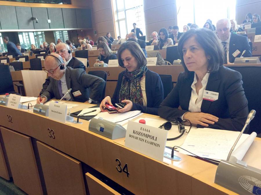 Κατά την παρέμβασή της, η βουλευτής Παναγιώτα Κοζομπόλη τόνισε μεταξύ άλλων την αναγκαιότητα της εξάλειψης των αιτιών που γεννούν την τρομοκρατία, όπως η περιθωριοποίηση που οπλίζει το χέρι εκείνων που ασκούν τρομοκρατικές πράξεις και η απελπισία των ανθρώπων που χάνουν την πατρίδα, την οικογένειά τους, την κανονικότητα της ζωής τους από εμφύλιες συρράξεις. Κάλεσε την Ευρωπαϊκή Ενωση να συμβάλλει στην υιοθέτηση κοινωνικών πολιτικών για την ενσωμάτωσή τους, αλλά και στην αποτροπή ανάμειξης στο εσωτερικό τρίτων χωρών. Οσον αφορά στη χώρα μας, ενημέρωσε για την ενσωμάτωση στο εθνικό δίκαιο της Ελλάδας οδηγιών της Ε.Ε. για τα θέματα ασφάλειας, αντιμετώπισης της τρομοκρατίας και του οργανωμένου εγκλήματος καθώς και του εγκλήματος στον κυβερνοχώρο.