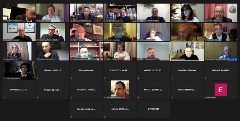 Η τηλεδιάσκεψη οργανώθηκε από το Επιμελητήριο Λακωνίας σε συνεργασία με τα Επιμελητήρια Μεσσηνίας, Αρκαδίας, Αιτωλοακαρνανίας και Φθιώτιδας και συμμετείχαν, εκτός από τους προέδρους των αντίστοιχων Επιμελητηρίων, όλοι οι βουλευτές της Ν.Δ. και του ΣΥΡΙΖΑ από τους Νομούς Λακωνίας, Φθιώτιδας και Αιτωλοακαρνανίας, ο περιφερειάρχης Δυτικής Ελλάδας, οι δήμαρχοι Σπάρτης, Αγρινίου και άλλων πόλεων, όπως και οι πρόεδροι Ενώσεων Αγροτικών Συνεταιρισμών και Συλλόγων Ελιάς των παραπάνω νομών.
