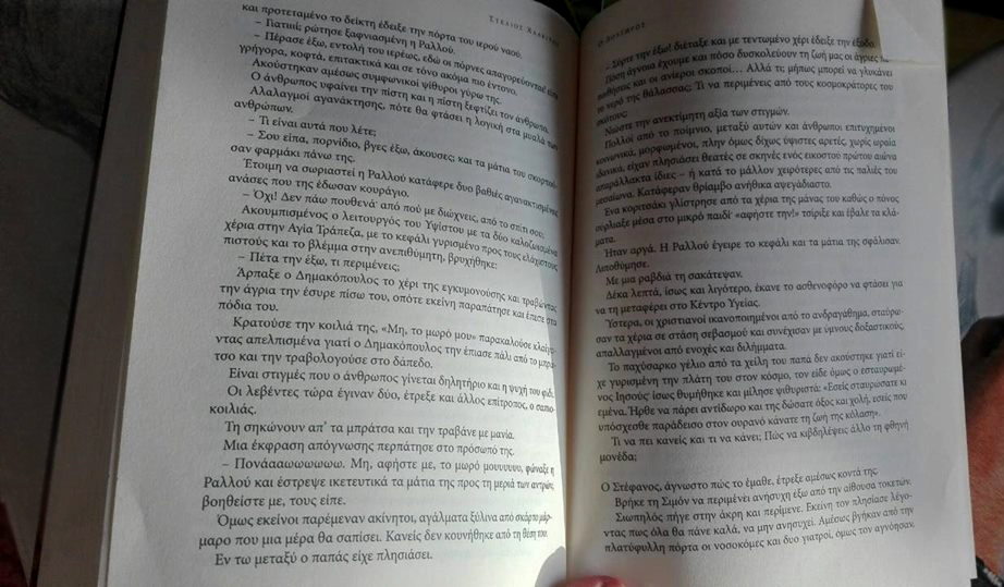 Νιώσε την ανεκτίμητη αξία των στιγμών. Πολλοί από το ποίμνιο, μεταξύ αυτών και άνθρωποι επιτυχημένοι κοινωνικά, μορφωμένοι, πλην όμως δίχως ύψιστες αρετές, χωρίς ωραία ιδανικά , είχαν πλησιάσει θεατές σε σκηνές ενός 21ου αιώνα απαράλλακτα ίδιες-ή κατά το μάλλον χειρότερες από τις παλιές του μεσαίωνα. Κατάφεραν θρίαμβο ανήθικα αψεγάδιαστο. Ένα κοριτσάκι γλίστρησε από τα χέρια της μάνας του καθώς ο πόνος ούρλιαξε μέσα στο μικρό παιδί ‘’αφήστε την!! ‘’ τσίριξε και έβαλε τα κλάματα.