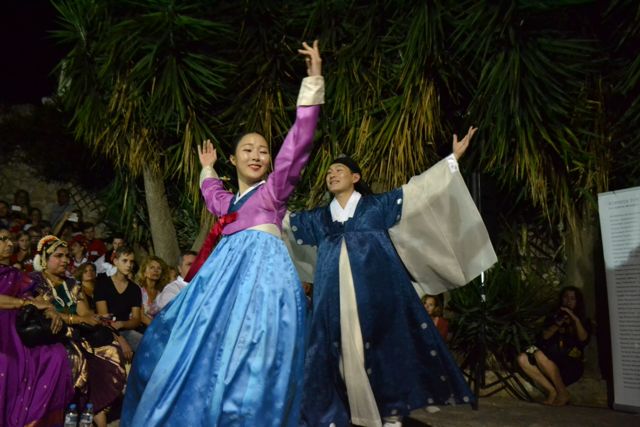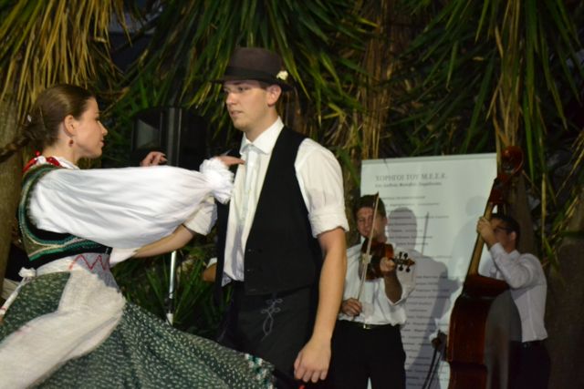 Μετά την επίσημη υποδοχή και την γνωριμία των αποστολών, ακολούθησε δείπνο στην πλατεία της Ανω Πόλης - και φυσικά δεν άργησαν ν' αρχίσουν οι χοροί, σε μια όμορφη βραδιά.