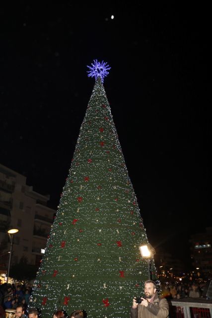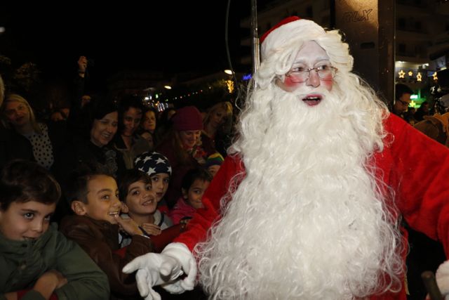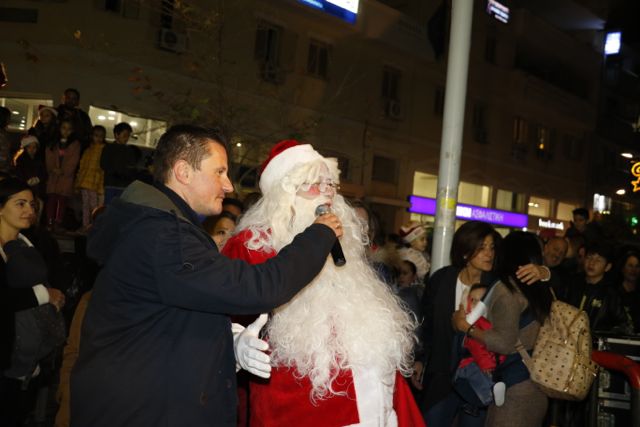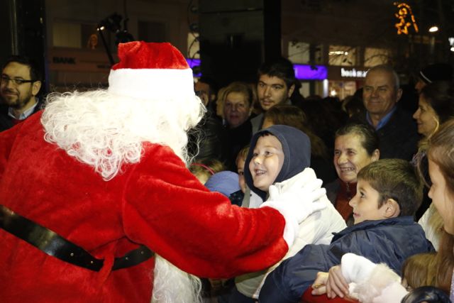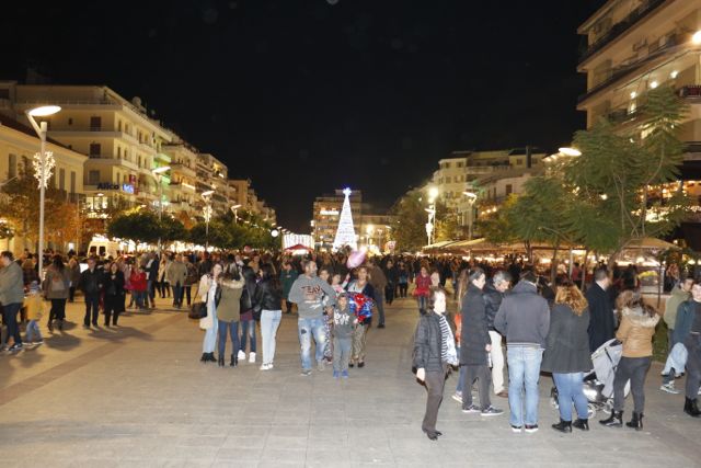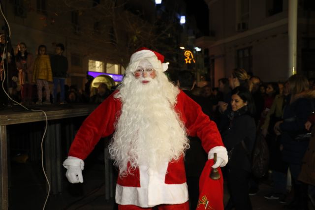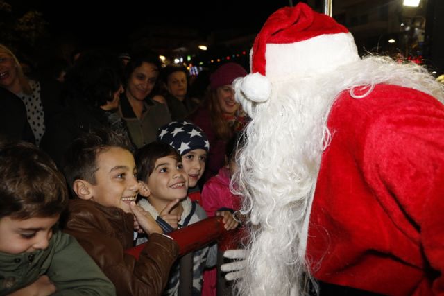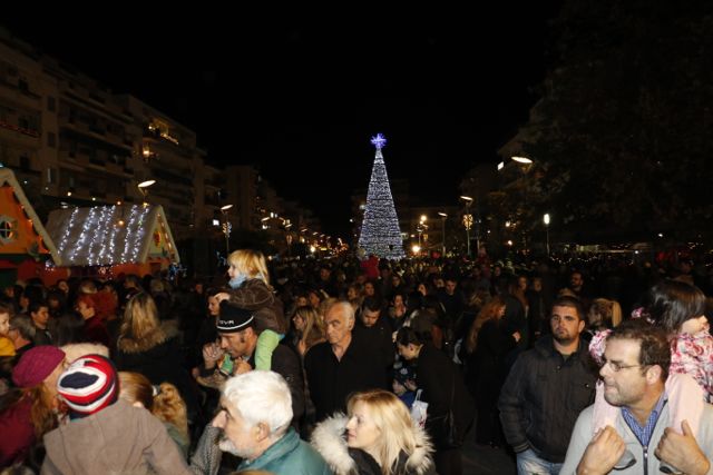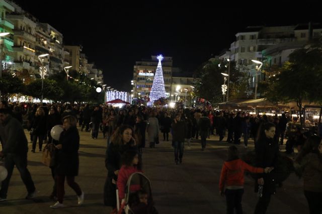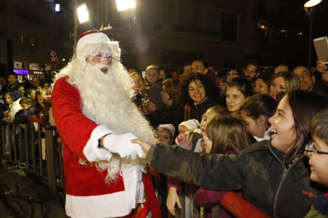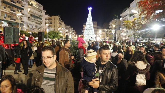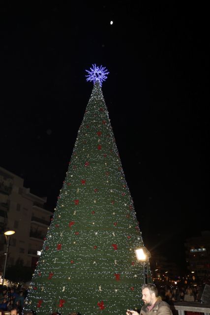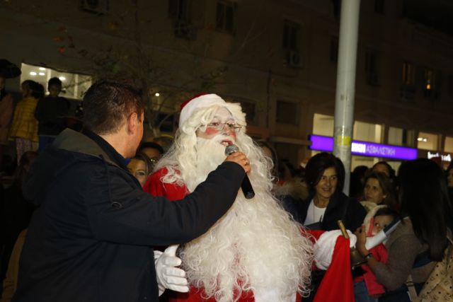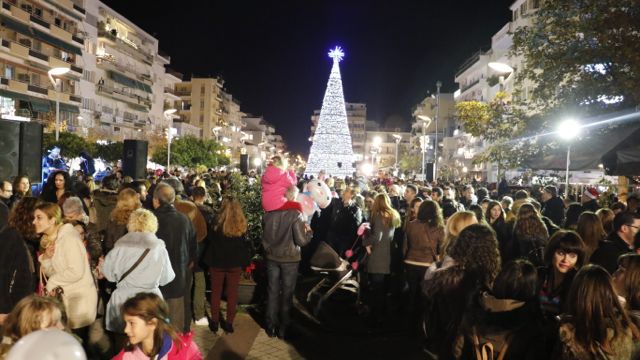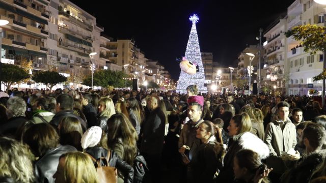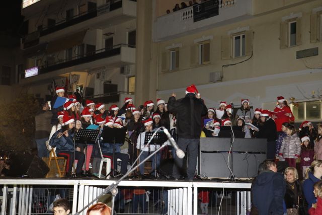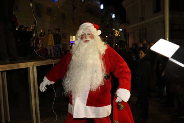 Η φωταγώγηση έγινε με τη συνοδεία πυροτεχνημάτων, παρουσία παιδιών κάθε ηλικίας, αλλά και μεγάλων, που είχαν κατακλύσει την πλατεία.