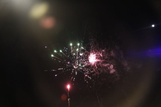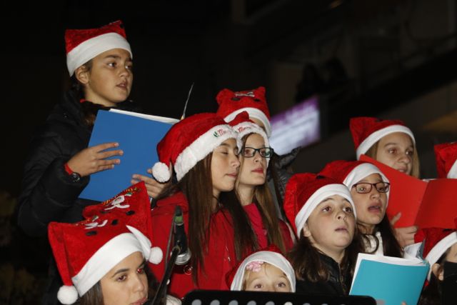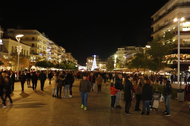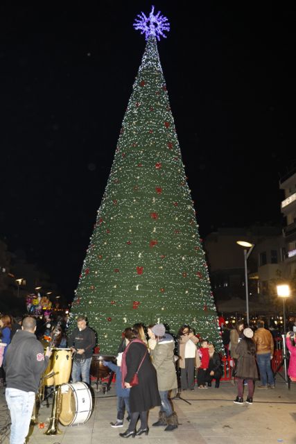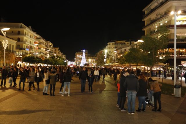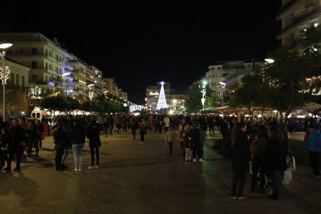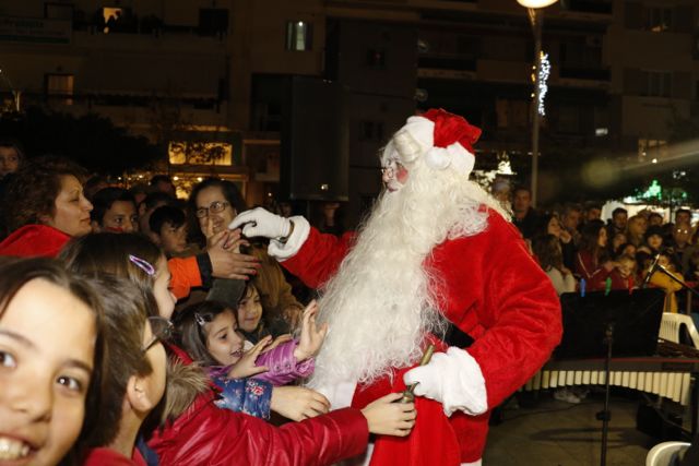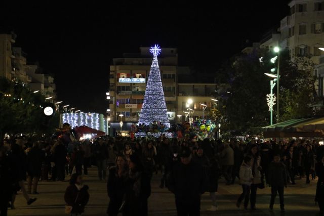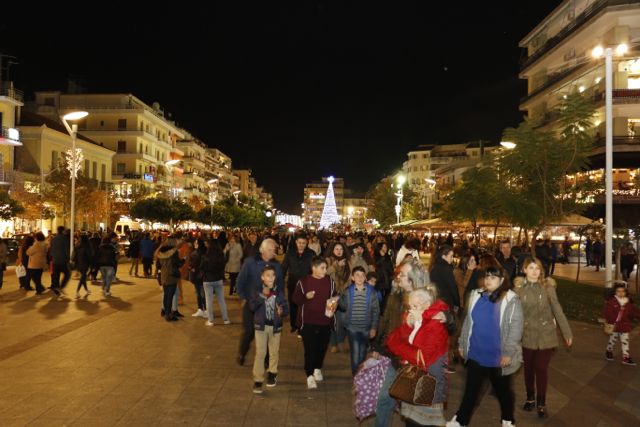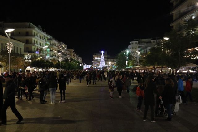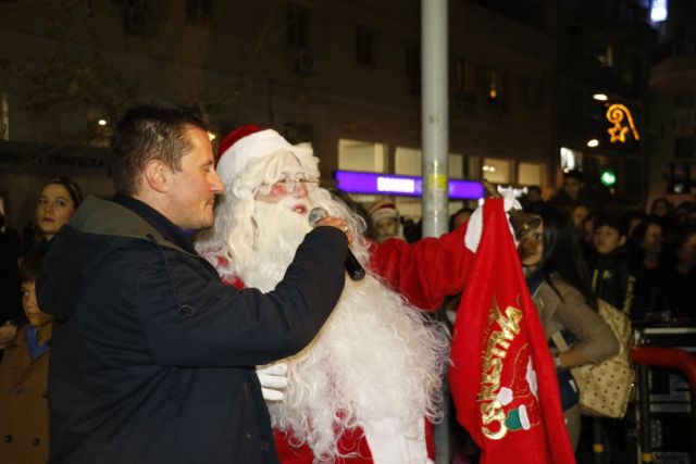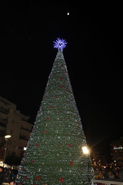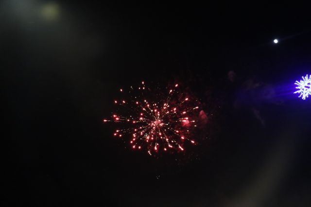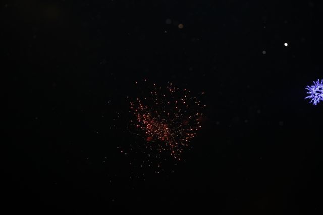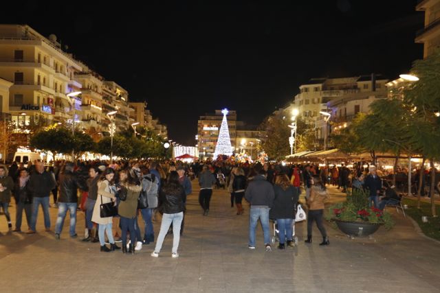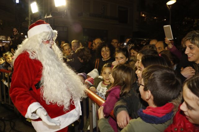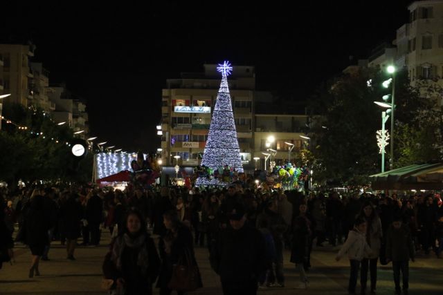 Η φωταγώγηση έγινε με τη συνοδεία πυροτεχνημάτων, παρουσία παιδιών κάθε ηλικίας, αλλά και μεγάλων, που είχαν κατακλύσει την πλατεία.