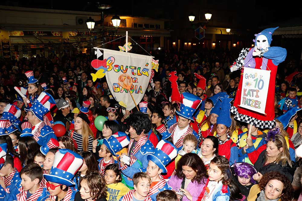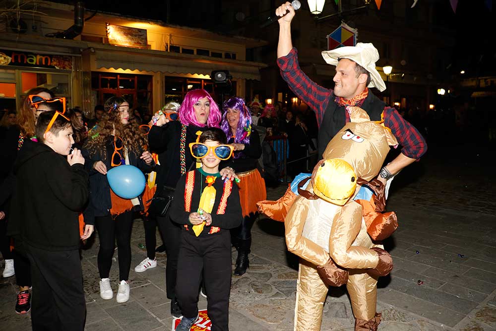 Η νυχτερινή παρέλαση κατέληξε στην πλατεία 23ης Μαρτίου και από εκεί και πέρα ξεκίνησε το μεγάλο πάρτι στο κέντρο της Καλαμάτας