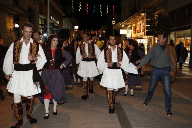 Ανδρες και γυναίκες από τη Μεσσήνη, ντυμένοι με παραδοσιακές φορεσιές και με τη συνοδεία κλαρίνου, χόρεψαν στον πεζόδρομο της Αριστομένους και κάλεσαν τον κόσμο στις εκδηλώσεις της πόλης τους, μαζί με το δήμαρχο Γιώργο Τσώνη και άλλα στελέχη της δημοτικής αρχής.