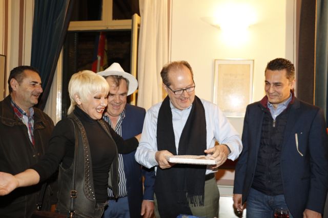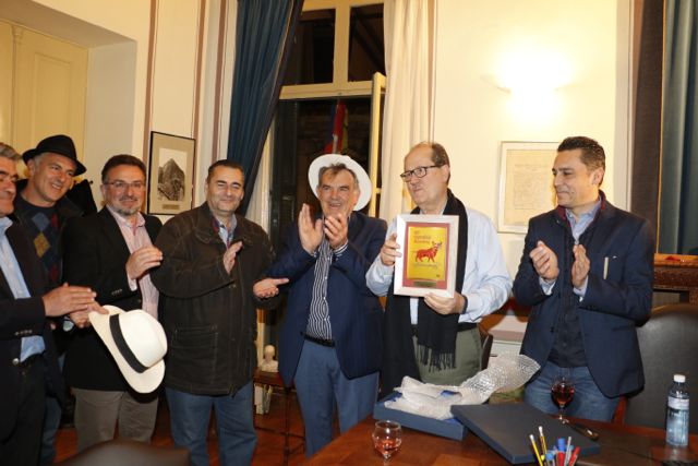 Στο ιστορικό Δημαρχείο τούς υποδέχθηκε ο δήμαρχος Παναγιώτης Νίκας, στον οποίο ο κ. Τσώνης πρόσφερε σε κάδρο την αφίσα του Καρναβαλιού της Μεσσήνης με τον ταύρο.