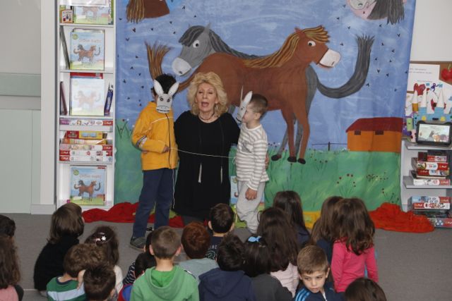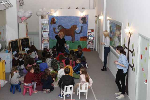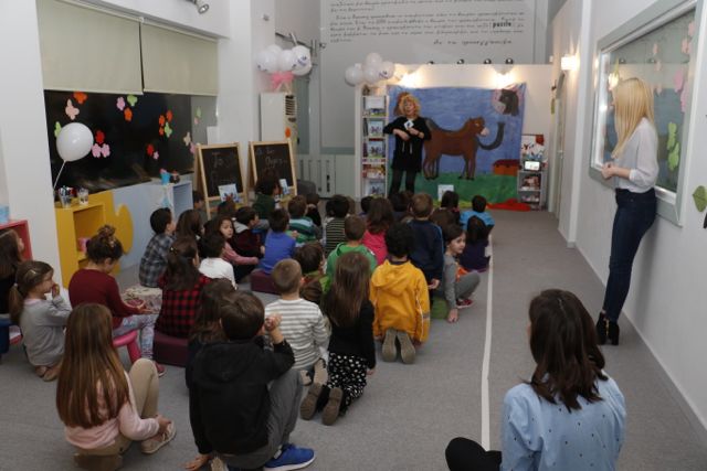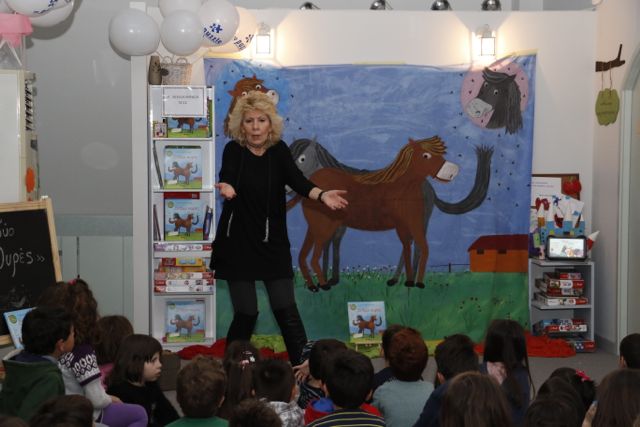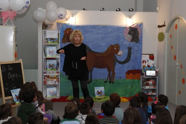 Εκεί, στο πλαίσιο της "Βραδιάς παραμυθιού" διάβασε το έργο της "Οι δυο ουρές".