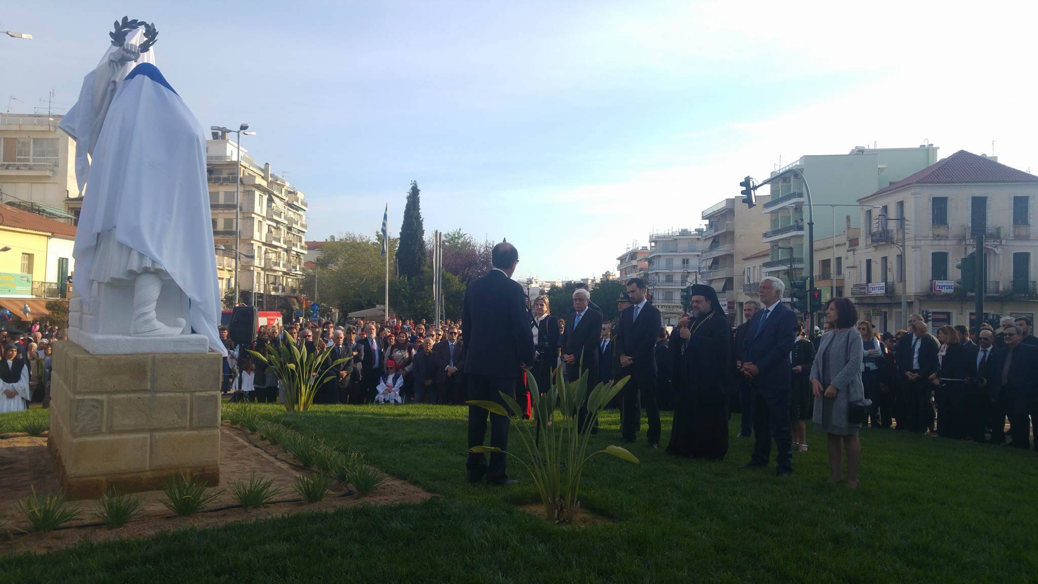Ακολούθησαν τα αποκαλυπτήρια του συμπλέγματος αγαλμάτων για την εθνεγερσία, δωρεά της Ιολάνδη Παπαδοπούλου - Rolshausen.