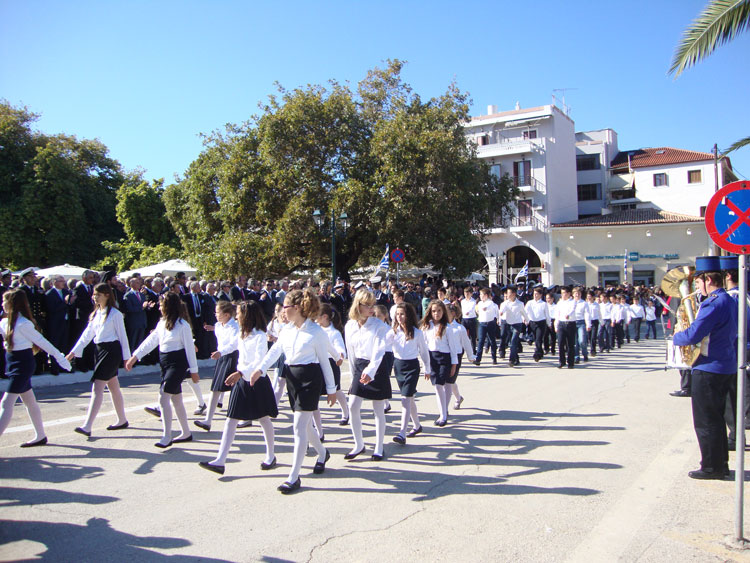 Μετά την ανάκρουση του εθνικού ύμνου, ακολούθησε παρέλαση μαθητών και στρατιωτικών τμημάτων, υπό τα χειροκροτήματα του κόσμου που είχε κατακλύσει κάθε γωνιά της πλατείας.