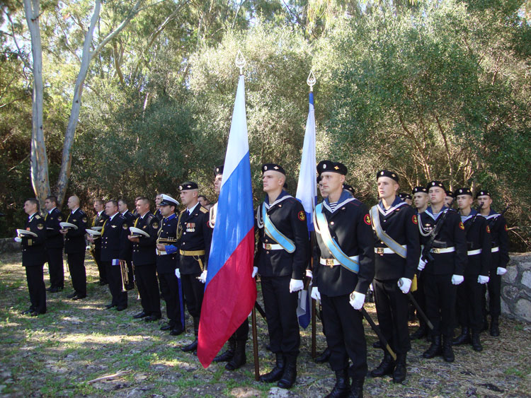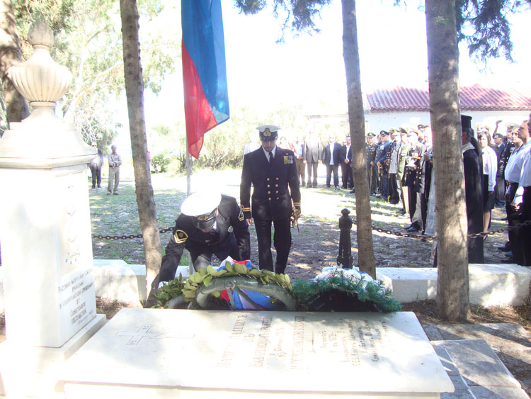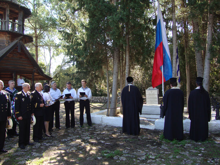 Λίγο πριν από τις 12 το μεσημέρι εκπρόσωποι των τριών πρεσβειών, του ΓΕΝ και του Δήμου Πύλου-Νέστορος επιβιβάστηκαν σε μικρές βάρκες και μετέβησαν στα νησιά Σφακτηρία, Φανάρι και Χελωνήσι, όπου βρίσκονται τα μνημεία των Ρώσων, Γάλλων και Αγγλων πεσόντων αντίστοιχα. Εκεί έγιναν επιμνημόσυνες δεήσεις και κατατέθηκαν στεφάνια.