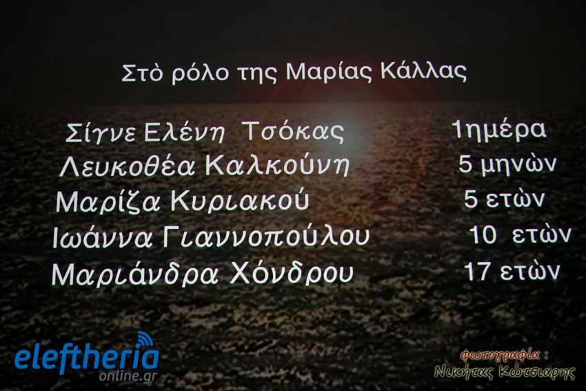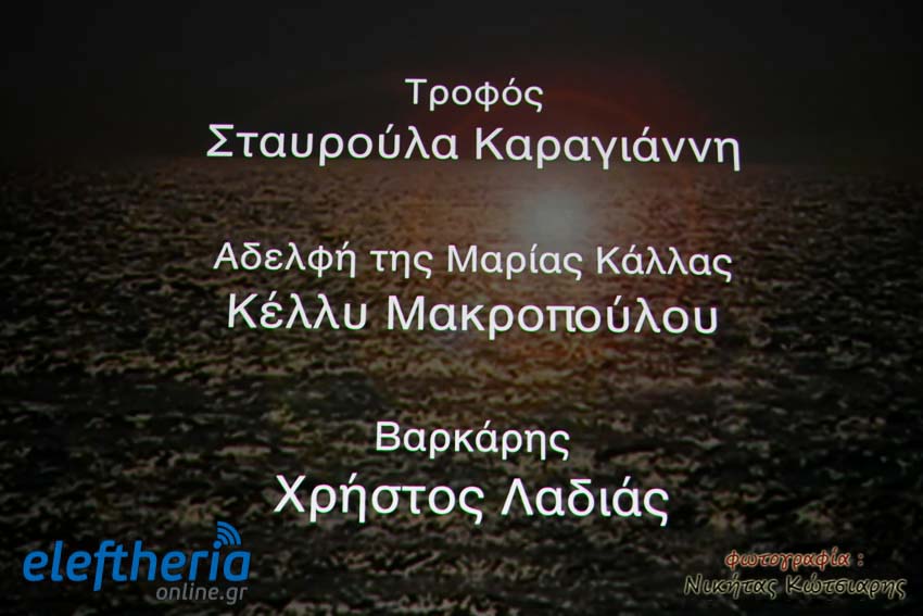 Με τη σειρά της η πρωταγωνίστρια Μυρτώ Καμβυσίδη ευχαρίστησε όλους όσους βοήθησαν στην ταινία, εθελοντές από την Ελλάδα και το εξωτερικό. Κάλεσε τους αρμόδιους να βοηθήσουν στο να εδραιωθεί η πολιτιστική κληρονομιά της Κάλλας, εδώ στη Μεσσηνία. “Ας μην ψάχνουμε την ανάπτυξη από μακριά, έχουμε τον πλούτο σεδώ, στον δικό μας τόπο, μην το ξεχνάμε αυτό” είπε και έδωσε το παράδειγμα μεγάλων μουσικών προσωπικοτήτων, όπως ο Μότσαρτ, τους οποίους οι γενέτειρες προβάλλουν με κάθε τρόπο.