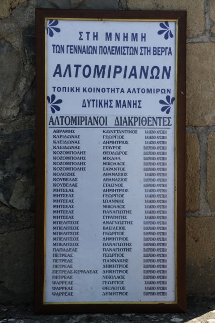 Εκεί τελέστηκε επιμνημόσυνη δέηση και κατέθεσαν στεφάνια ο περιφερειάρχης Πελοποννήσου Πέτρος Τατούλης, ο ταγματάρχης του 9ου Σ.Π. Ξενοφών Ζέππος, οι δήμαρχοι Καλαμάτας Παναγιώτης Νίκας και Δυτικής Μάνης Γιάννης Μαραμπέας, ο πρόεδρος της Δημοτικής Κοινότητας Βέργας Παναγιώτης Χειλάς, ο πρόεδρος του Πολιτιστικού και Αναπτυξιακού Συλλόγου Βέργας Χαράλαμπος Αφάλης και οι εκπρόσωποι 8 ακόμα φορέων της Βέργας και της Μάνης.