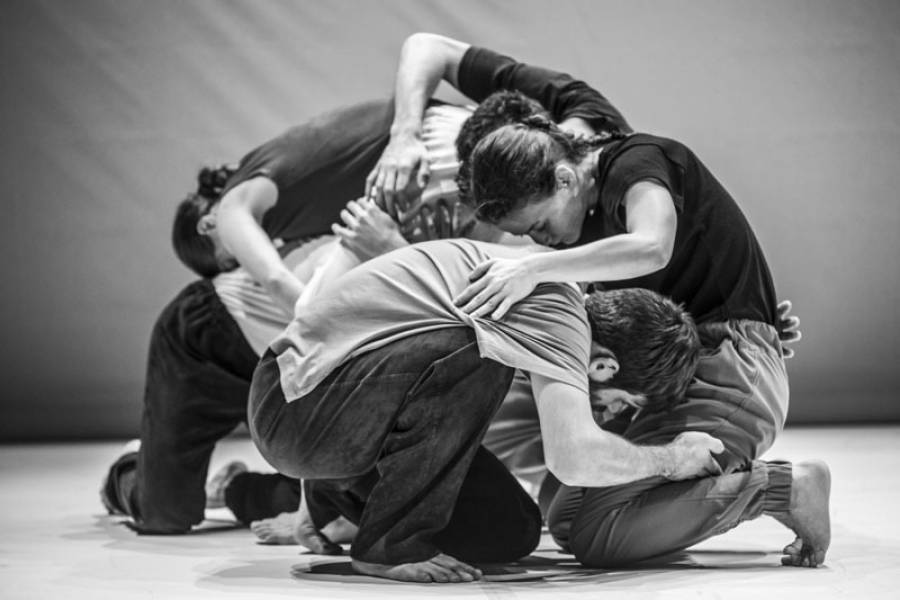 Το πρώτο τμήμα της χορογραφίας τους παρουσίασε σε μια απόλυτη αρμονία και ταύτιση μεταξύ τους. Το ένα σώμα συναντούσε το άλλο με ήπιες, ήρεμες κινήσεις και όλα μαζί μπλέκονταν και ξεμπλέκονταν δημιουργώντας έτσι ένα ανθρώπινο σύνθετο παζλ.