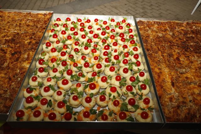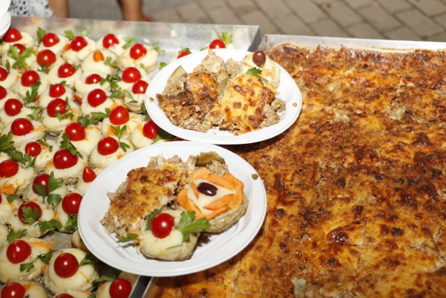 Ο κόσμος απόλαυσε αγκινάρες με κιμά παπουτσάκια και μουσακά, αγκινάρες πίτσα, αγκινάρες με λουκάνικο - αυγά και τυρί και αγκινάρες σκορδαλιά στολισμένες σαν τριαντάφυλλο.