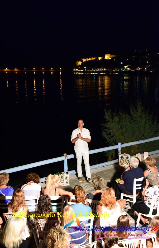 Το Σάββατο 26 Αυγούστου ο Κώστας Κρομμύδας παρουσίασε το βιβλίο του "Φως μέσα στη θύελλα", στην παραλία Αρτάκι με φόντο την Κορώνη.