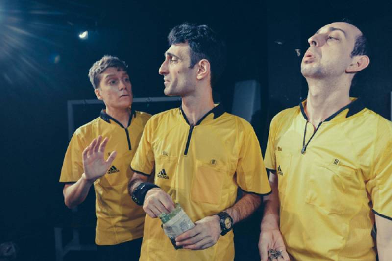 Χιούμορ και ανθρωπιά από τρεις νέους άνδρες… Το «παιχνίδι» στο παρασκήνιο. Τα αποδυτήρια προσκήνιο. Και τρεις νέοι άντρες… Με χιούμορ, χαμόγελο… και πότε – πότε συγκίνηση, παρακολουθούμε τον αγώνα που δεν «βλέπουμε»… Κίτρινες, κόκκινες κάρτες, πέναλτι και οφσάιντ σφυρίζονται στο… «παιχνίδι»  των σχέσεων και της ζωής τους. Αυτό το «παιχνίδι» βλέπουμε. Ζωής, σχέσεων, αγάπης, μίσους, ανθρώπων και ανθρωπιάς Με αφορμή τη στρογγυλή θεά.