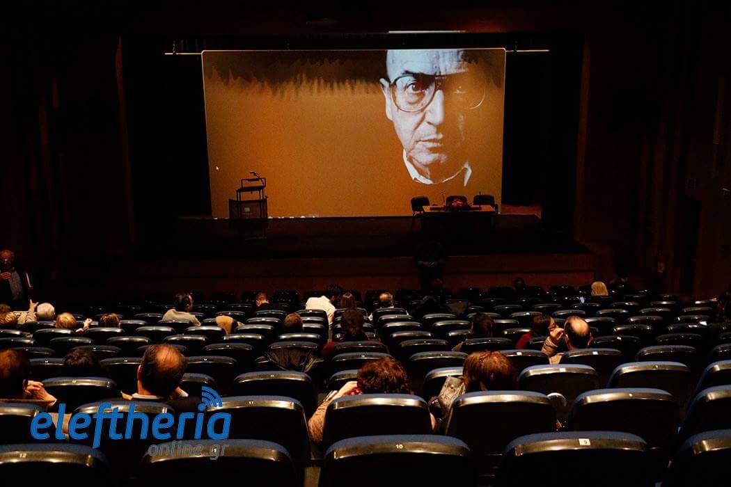 Το κύριο μέρος της εκδήλωσης ξεκίνησε με την προβολή της ασπρόμαυρης ταινίας μικρού μήκους (και πρώτης ταινίας του Θ. Αγγελόπουλου) "Η εκπομπή", παραγωγής 1968.