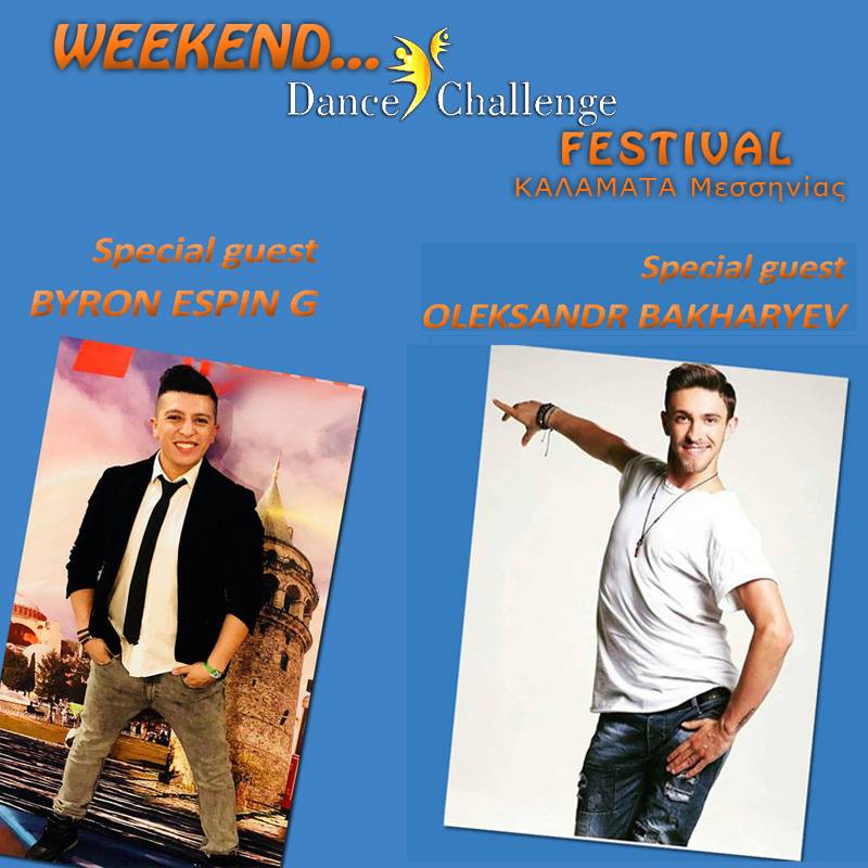 Το ‘Weekend Dance Challenge Summer Festival" θα φιλοξενήσει στην πόλη δύο διακεκριμένους καλλιτέχνες χορού από τον αθλητικό - διαγωνιστικό, αλλά και κοινωνικό - καλλιτεχνικό χορό λάτιν: τους Oleksandr Bakharyev (από το περσινό TV show “So you think you can dance” από το "Zhivo Dance Team", καταξιωμένο επαγγελματία χορευτή στο international latin, Byron Espin G (από το Ecuador, διάσημο επαγγελματία χορευτή latin, bachata, salsa).
