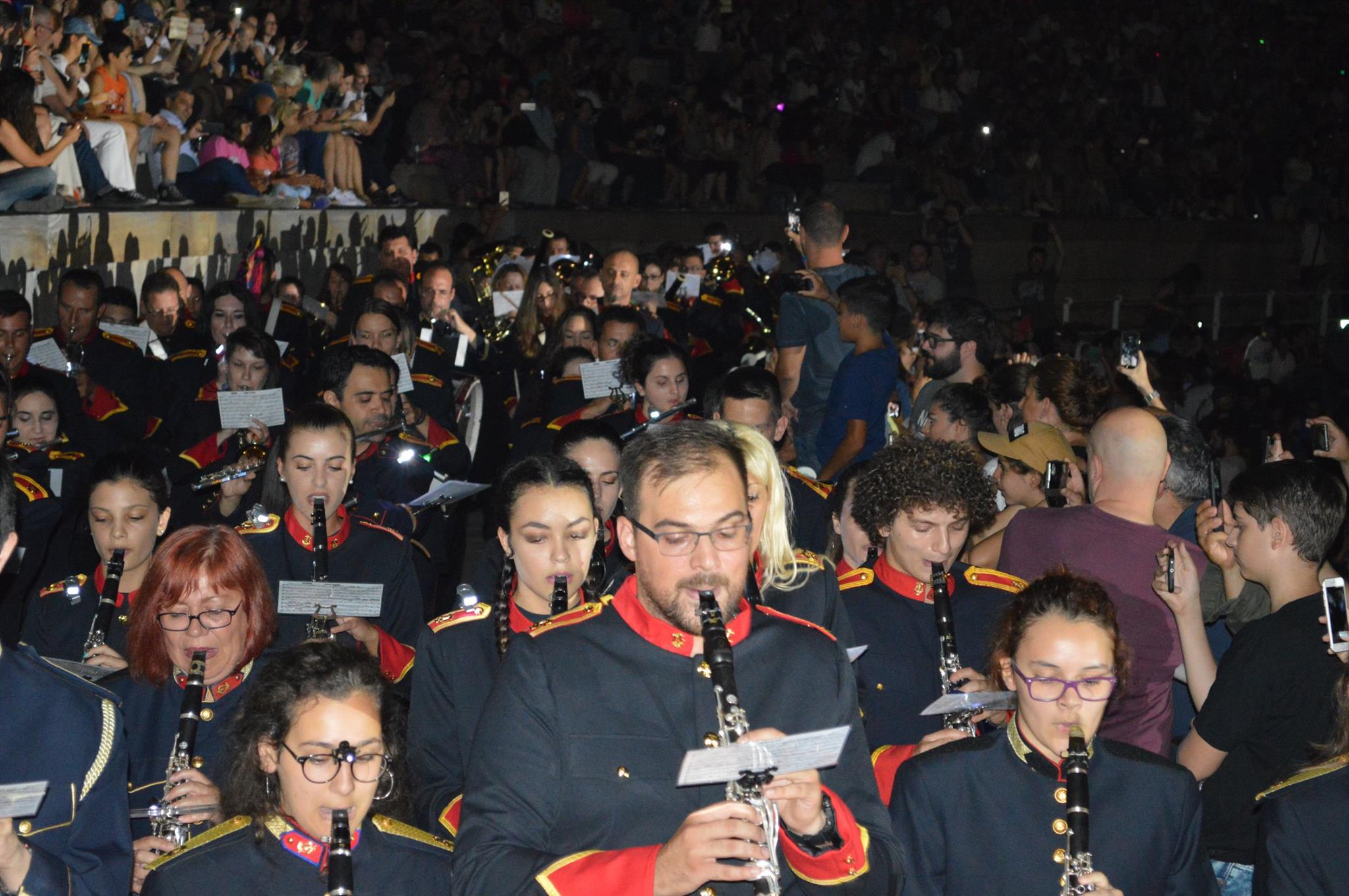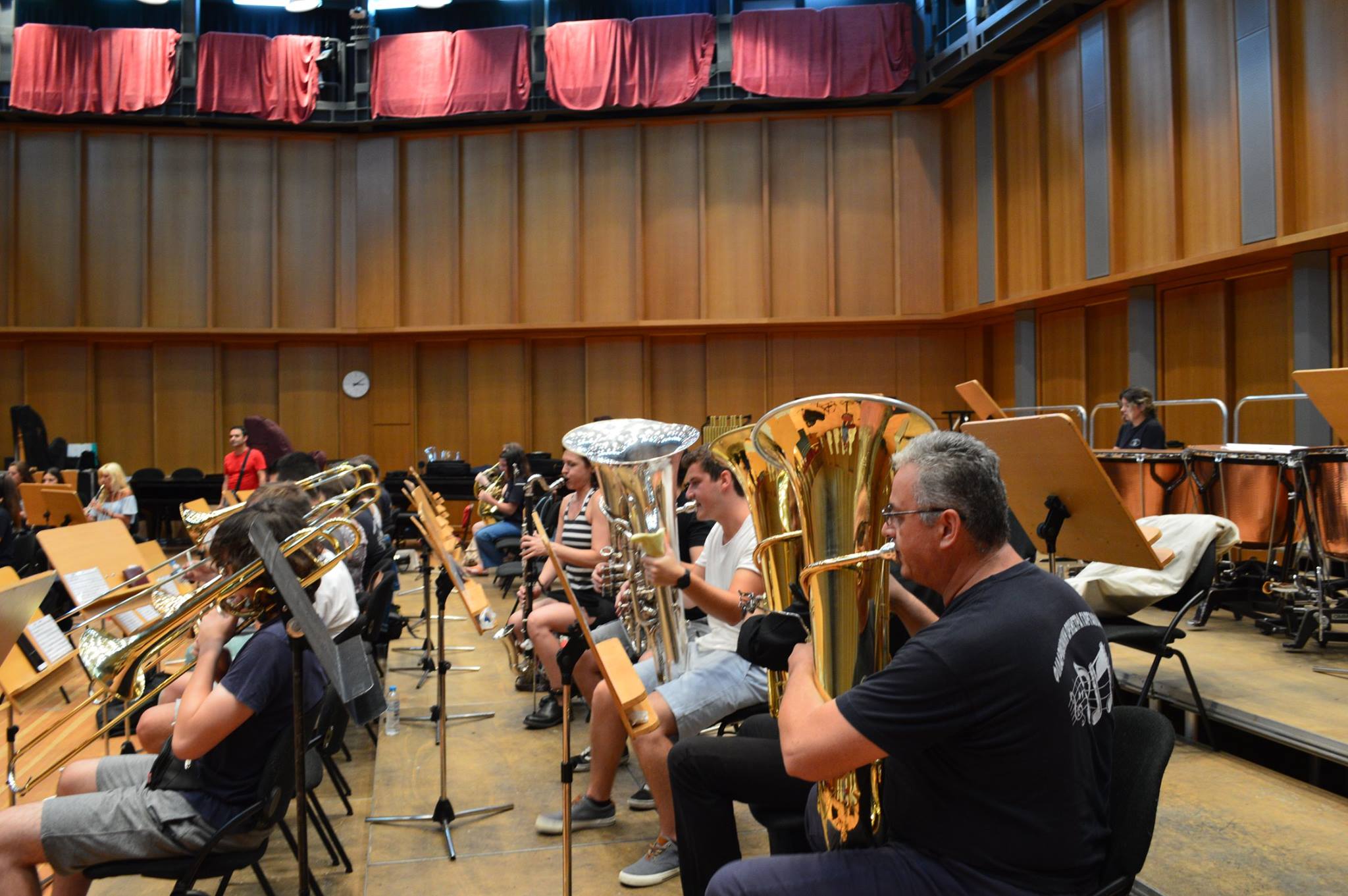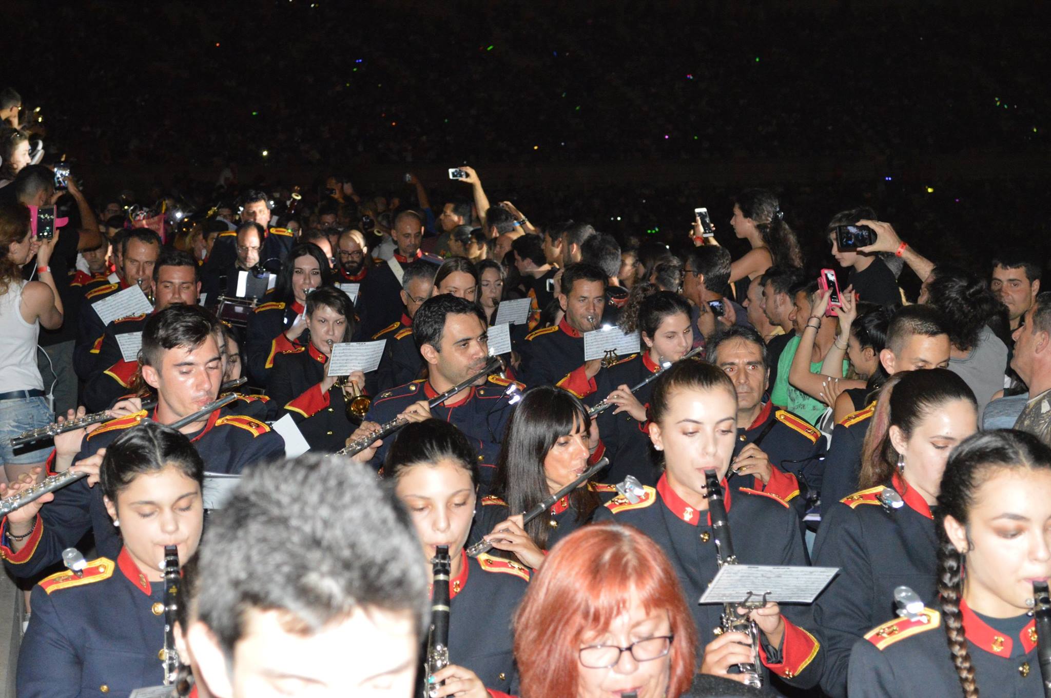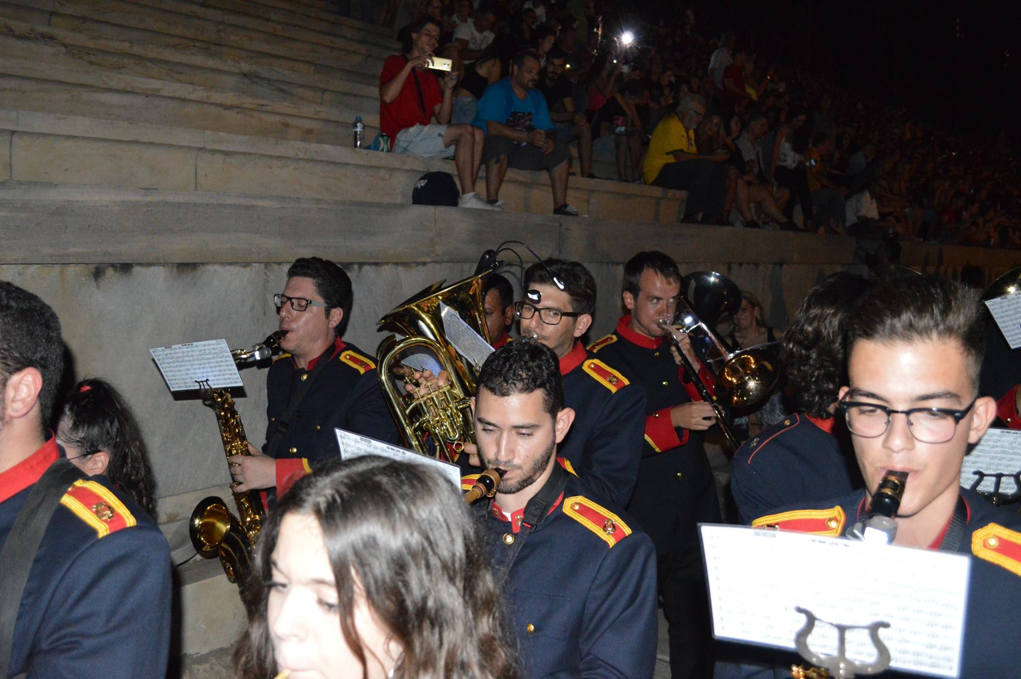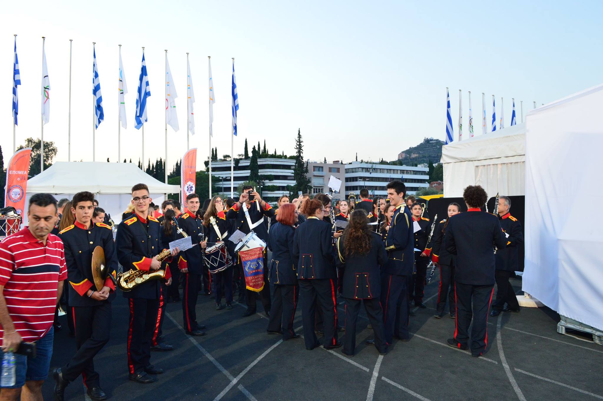 Αρχικώς όλοι οι μουσικοί μας έζησαν μια μοναδική εμπειρία κατά τη διάρκεια της πρόβας μας στην αίθουσα δοκιμών της Κρατικής Ορχήστρας του Μεγάρου Μουσικής Αθηνών. Ύστερα μεταβήκαμε στο χώρο του Καλλιμάρμαρου Σταδίου όπου παίξαμε και δώσαμε τον καλύτερό μας εαυτό σε δύο από τα γνωστότερα τραγούδια του συγκροτήματος , το: «Moment of Glory» και το « Νo οne like you» ενορχηστρωμένα και προσαρμοσμένα σε ορχήστα πνευστών από τον φίλο και αρχιμουσικό κ. Παναγιώτη Βλάχο.