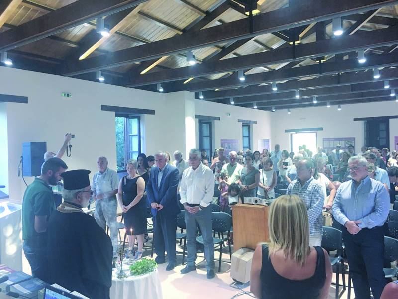 Τα εγκαίνια ξεκίνησαν με αγιασμό του χώρου και στην συνέχεια απευθύνθηκαν χαιρετισμοί καθώς επίσης έγινε και εκτενής παρουσίαση της αποκατάστασης του έργου.