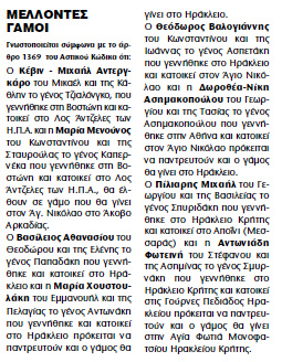 Η αναγγελία του γάμου τους σε κρητική εφημερίδα αναφέρει: «O Κέβιν - Μιχαήλ Αντεργκάρο του Μικαέλ και της Κάθλην το γένος Τζιαλόνγκο, που γεννήθηκε στην Βοστώνη και κατοικεί στο Λος Άντζελες των Η.Π.Α και η Μαρία Μενούνος του Κωνσταντίνου και της Σταυρούλας το γένος Καπερνέκα που γεννήθηκε στην Βοστώνη και κατοικεί στο Λος Άντζελες των ΗΠΑ,θα έλθουν σε γάμο που θα γίνει στον Άγ. Νικόλαο στο Άκοβο Αρκαδίας».