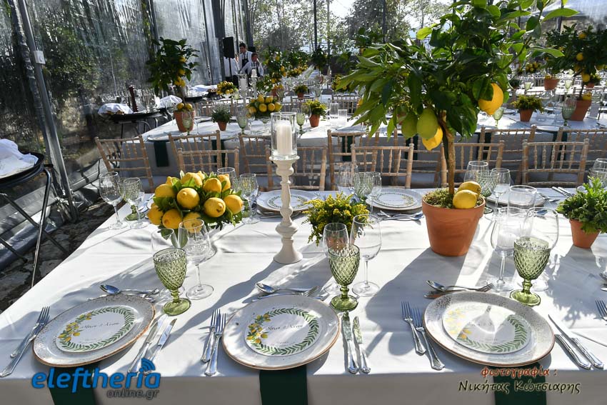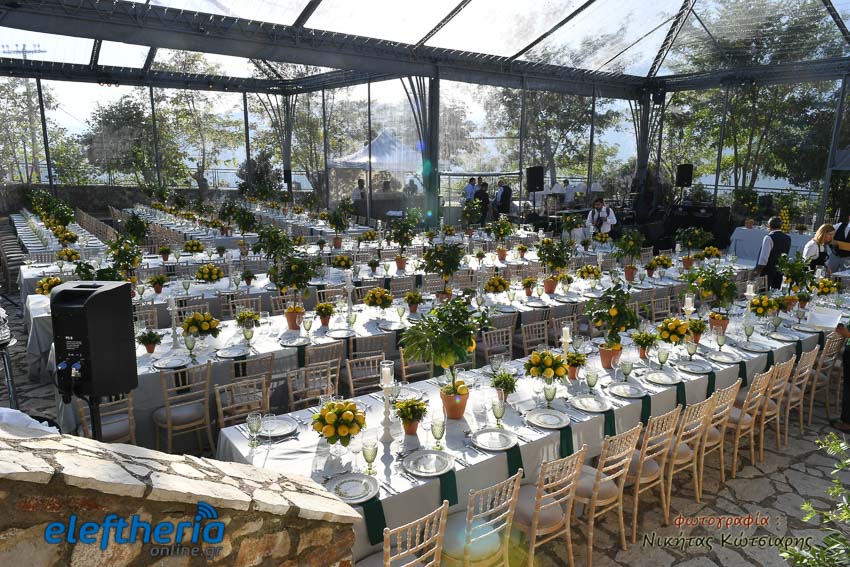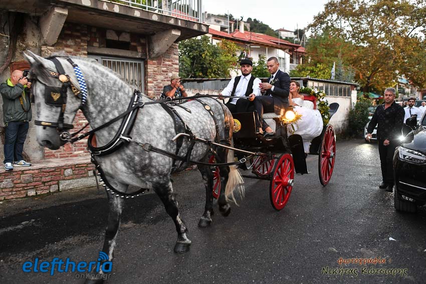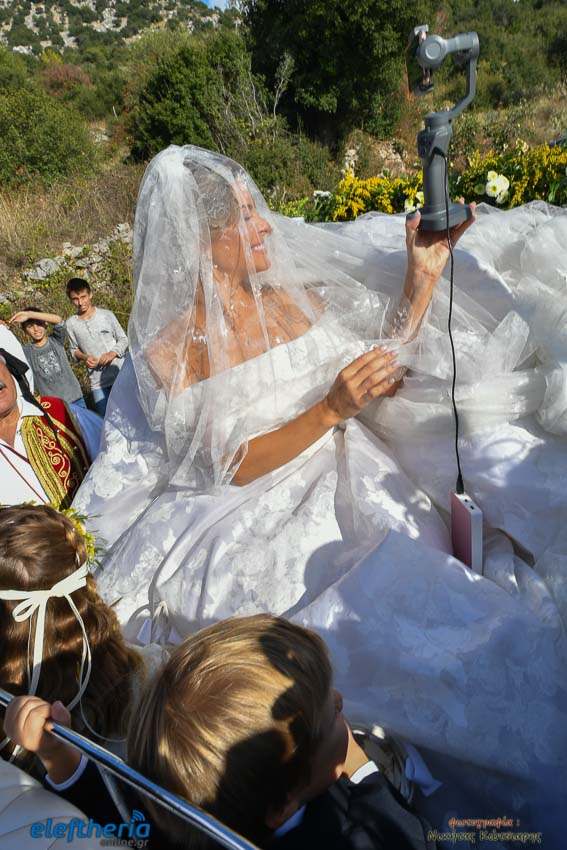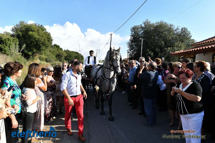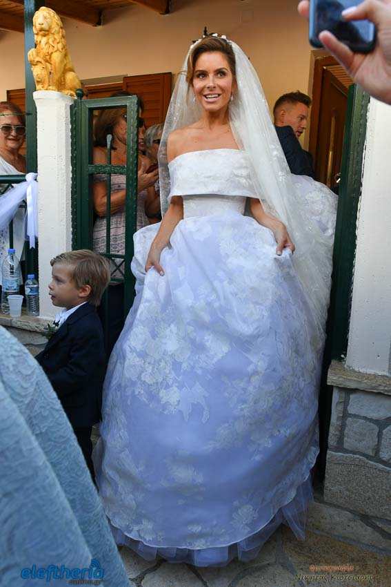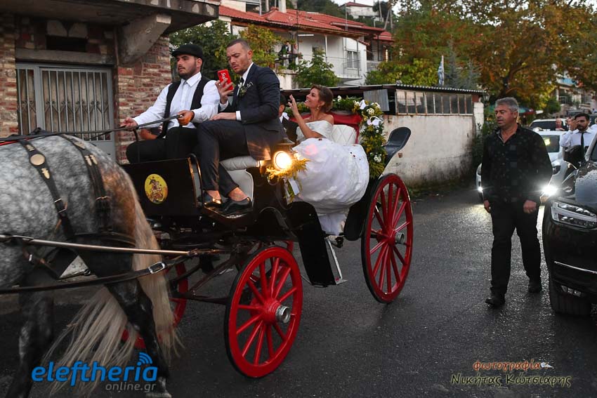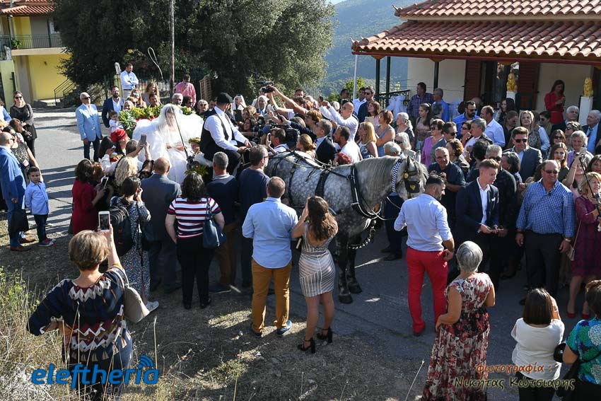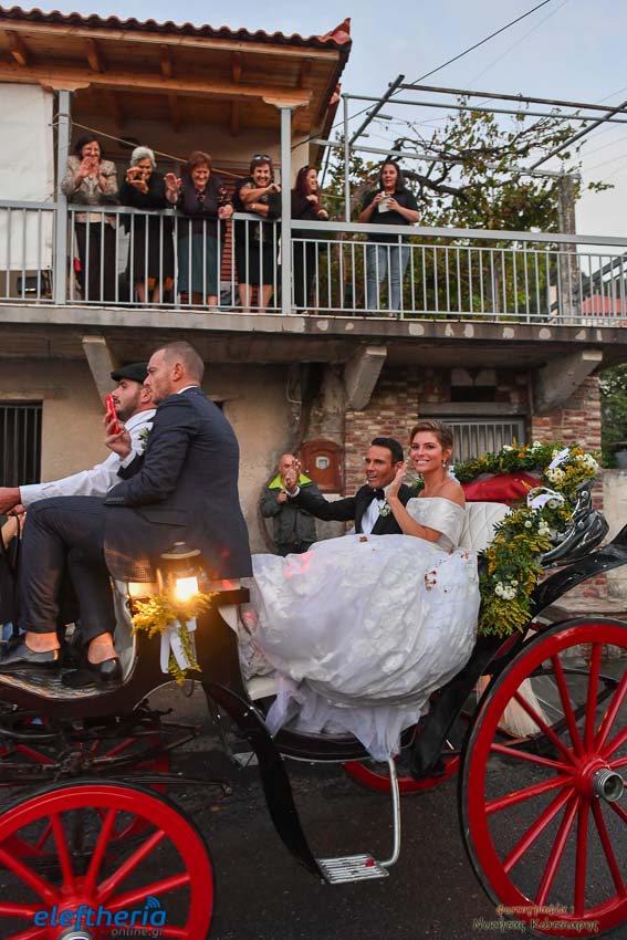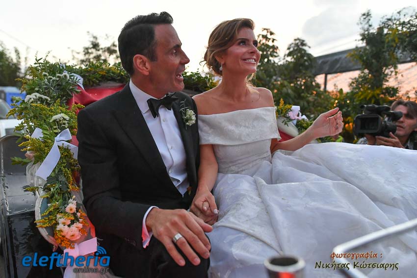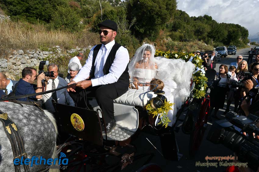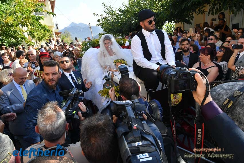Η νύφη έφτασε στην εκκλησία το απόγευμα του Σαββάτου με άμαξα, ενώ το άρωμα Ελλάδας ήταν έντονο, από το φαγητό μέχρι τον στολισμό.