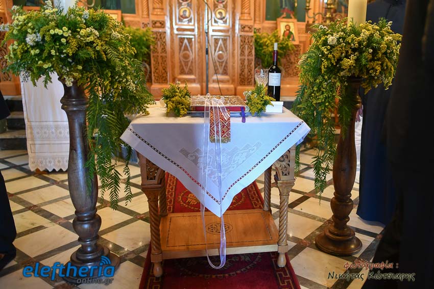 Το μυστήριο ήταν ανοιχτό και σχεδόν όλο το χωριό βρέθηκε στους δρόμους για να δει από κοντά το ζευγάρι ενώ έξω από την εκκλησία στήθηκε παραδοσιακό γλέντι. Το μυστήριο πραγματοποιήθηκε στον Ιερό Ναό Αγίου Νικολάου.