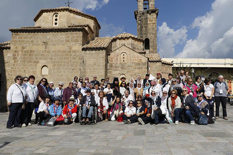 Στο ναό των Αγίων Αποστόλων, ο Παύλος Κλάδης με παραδοσιακή φορεσιά (ντυμένα με παραδοσιακές στολές ήταν και άλλα 4 άτομα), από τον Πολιτιστικό Σύλλογο της Βέργας, παλιό στέλεχος του ΣΕΟ, τους ενημέρωσε για την ιστορία του ναού και της περιοχής του Ιστορικού Κέντρου και σημείωσε πως απ’ αυτόν ξεκίνησε ο αγώνας των Ελλήνων για την ελευθερία στις 23 Μαρτίου 1821.