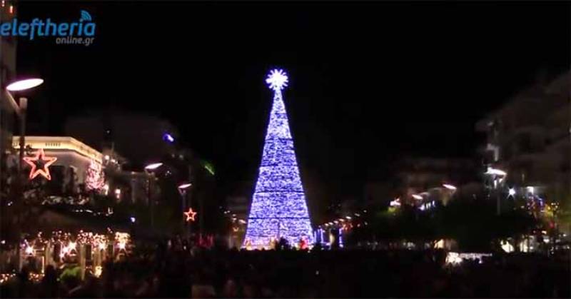 Λαοθάλασσα στη φωταγώγηση του χριστουγεννιάτικου δέντρου στην Καλαμάτα (βίντεο)