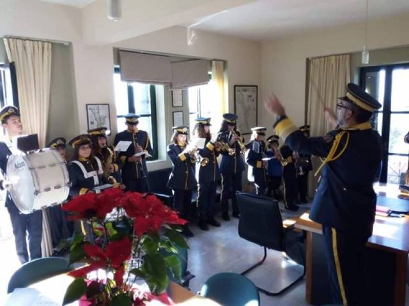 Εορταστική νότα την Παρασκευή στο δημαρχείο Δυτικής Μάνης, στην Καρδαμύλη, καθώς η Φιλαρμονική της περιοχής έπαιξε τα κάλαντα στο δήμαρχο Γιάννη Μαραμπέα.