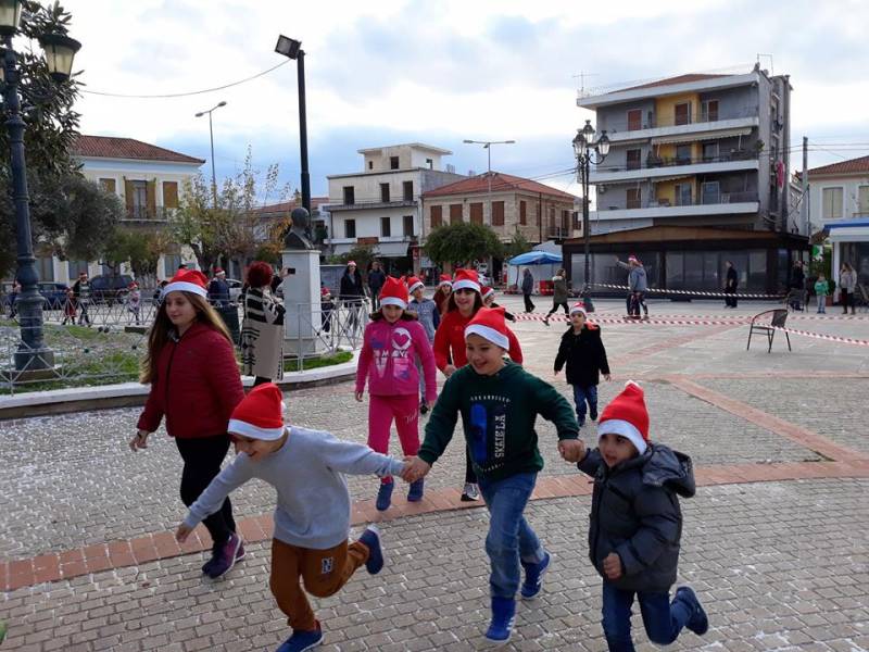 Οι μικροί Αϊ - Βασίληδες έτρεξαν και έπαιξαν, ενώ μικροί και μεγάλοι γεύτηκαν τα κεράσματα που υπήρχαν για όλους. Η εκδήλωση πέρα από τον ψυχαγωγικό είχε και φιλανθρωπικό χαρακτήρα, για την ενίσχυση του Συλλόγου “Φλόγα”, καθώς από την Κοινωφελή Επιχείρηση του δήμου αγοράστηκαν ημερολόγια της “Φλόγας” που μοιράστηκαν στα παιδιά.