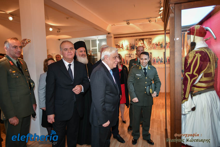 Εκεί ξεναγήθηκε στην έκθεση με τίτλο: "Η Ευζωνική Στολή", που αποτελεί δωρεά του Αλέξανδρου Χαΐτογλου.