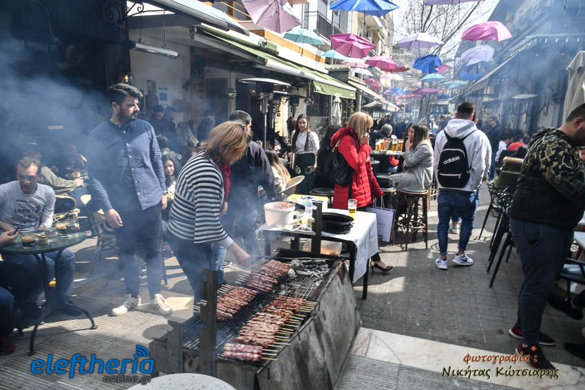 Στο κέντρο και στις γειτονιές, στα πεζοδρόμια και στις πλατείες αλλά και στα σχολεία η τσίκνα απλώνεται παντού.