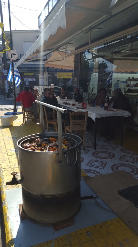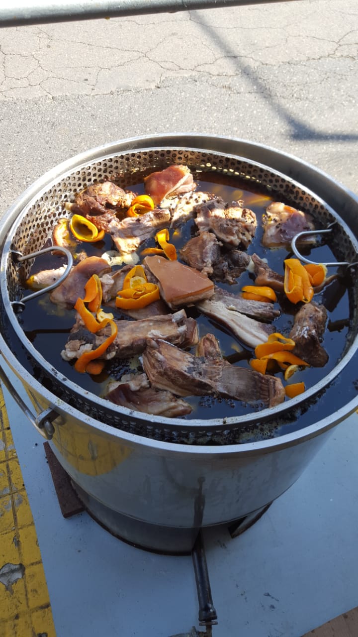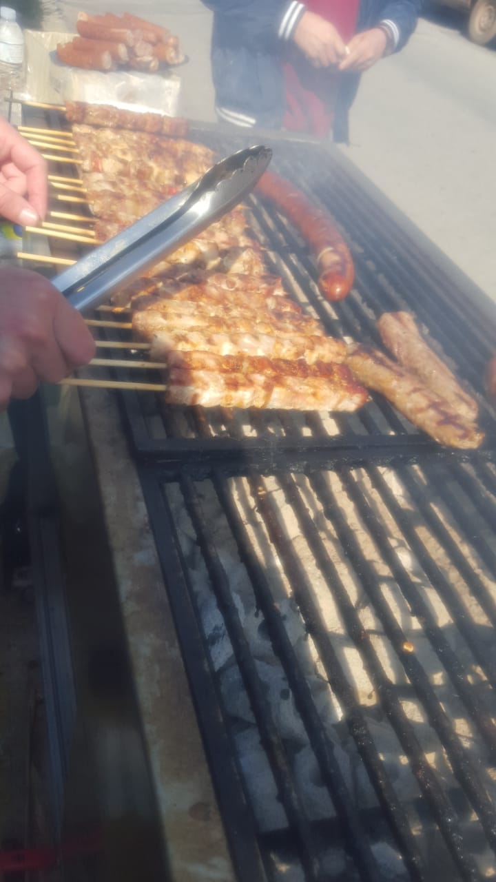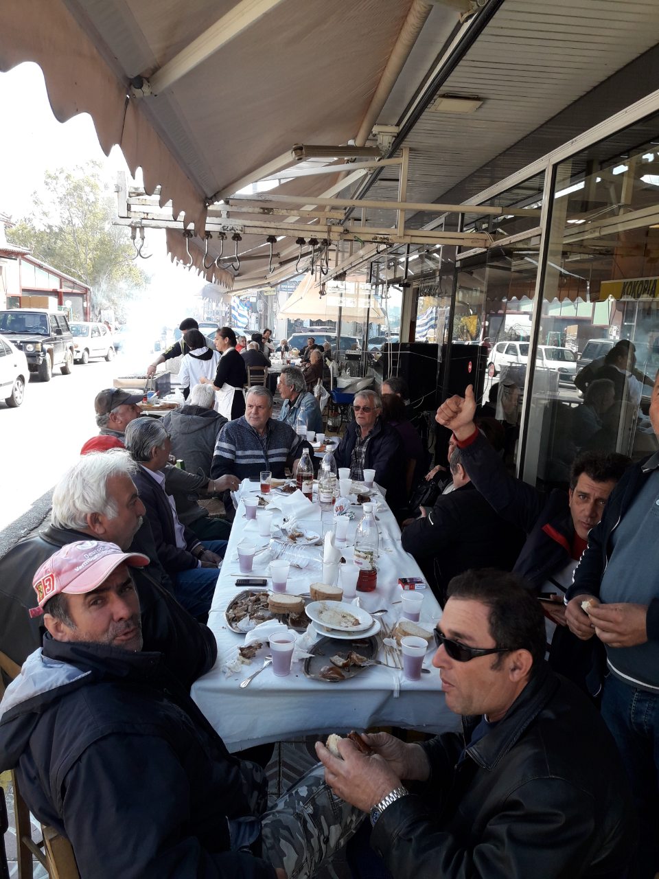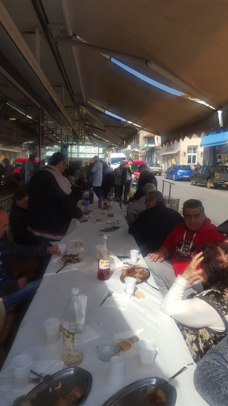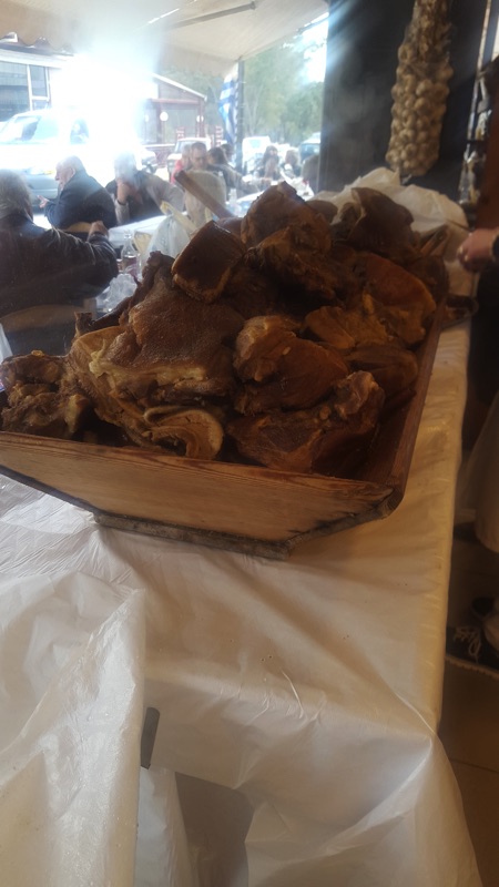 Το παραδοσιακό ψήσιμο συνοδεύεται από κρασί και πολύ κέφι έχοντας δημιουργήσει μία όμορφη εορταστική ατμόσφαιρα στην περιοχή.
