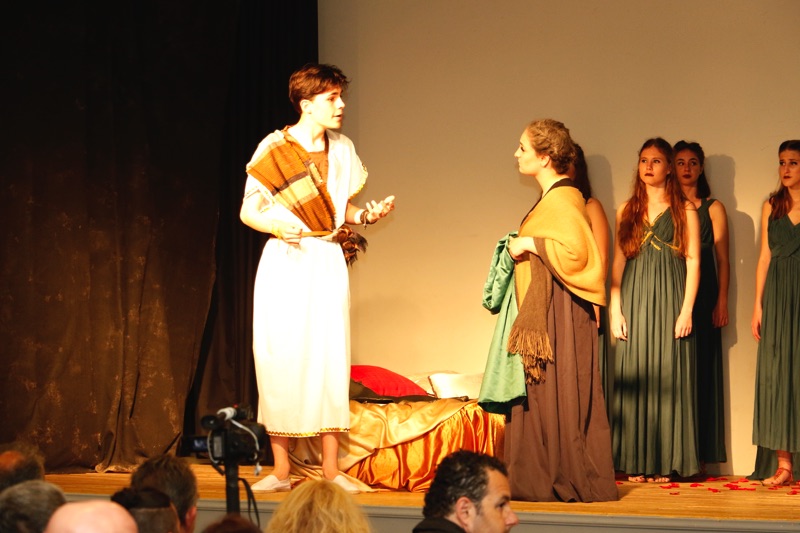Η εκπαιδευτικός Αγγελική Ρακιντζή έκανε την παρουσίαση και η υπάλληλος του Τμήματος Πολιτισμού Χριστίνα Αθανασοπούλου μίλησε για το μύθο του “Ιππόλυτου”. Εκ μέρους της ομάδας “La Nave Argo” (Alumni of Colegio Inmaculada Jesuitas de Alicante) χαιρέτισε ο Nicolas Fernando. Σήμερα στις 9.30 π.μ. ανεβαίνουν οι “Τhe Βαcchae” by Euripides από τη θεατρική ομάδα “Royal Academy of Dramatic Art” England και στις 11 π.μ ο “Προμηθέας Δεσμώτης” του Αισχύλου από τη θεατρική ομάδα 8ου Γυμνασίου - Λυκειακών Τάξεων Χαλανδρίου.